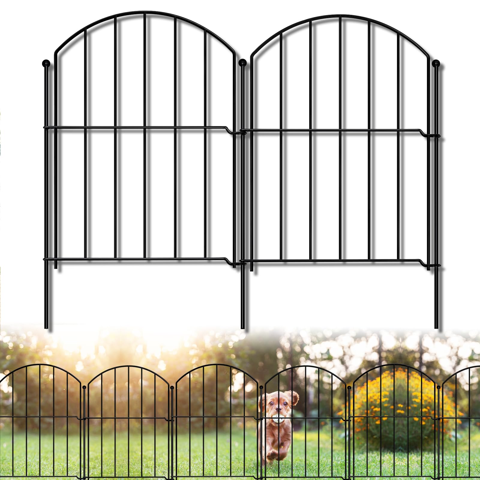 Valla de jardín de metal de 26 pulgadas de alto x 20 pies de largo, 10 paneles + 11 estacas con borde para perros, barrera para an