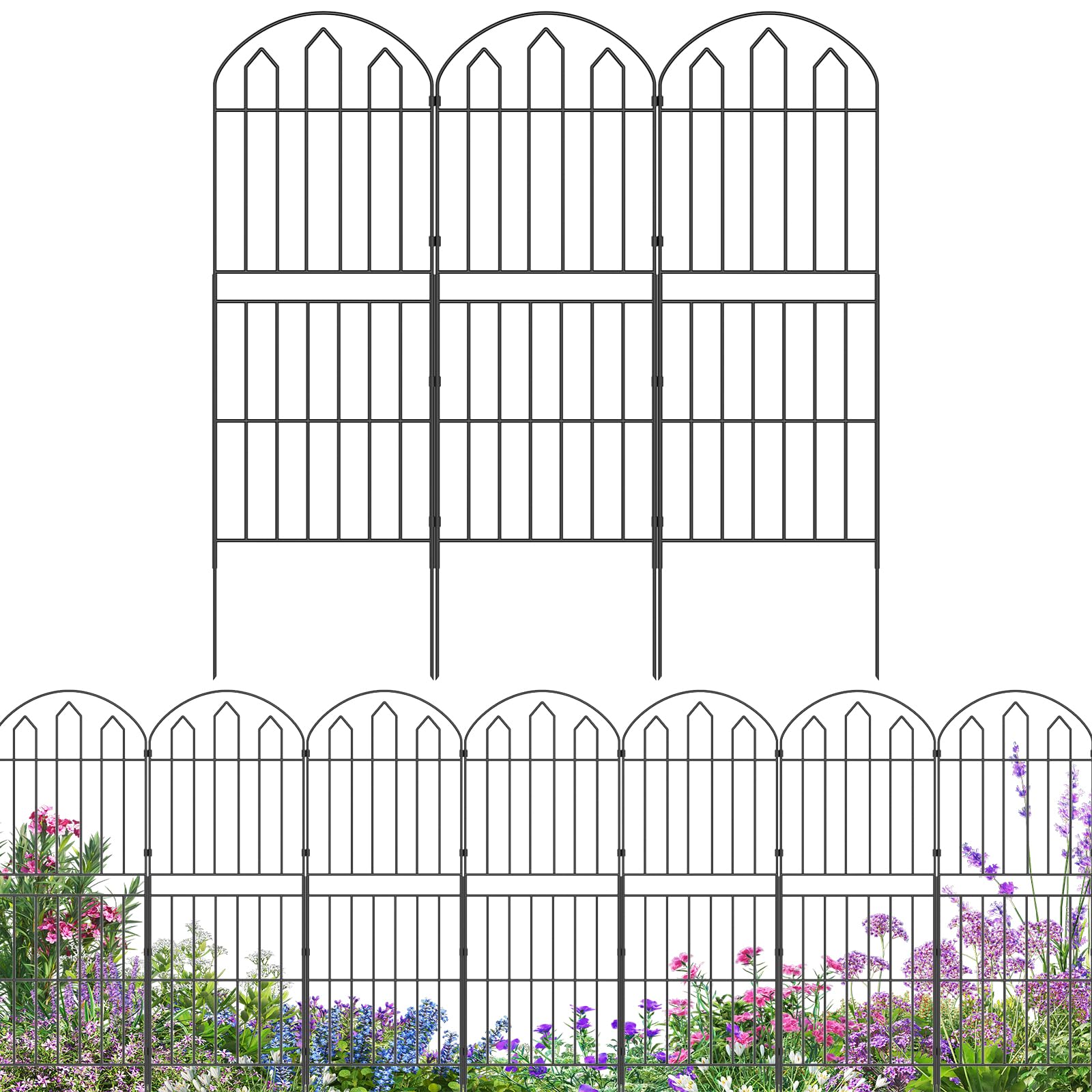 GOTGELIF Valla decorativa para jardín, 25 paneles, 17 pulgadas de alto x 26.7 pies de largo, barrera arqueada para animales sin ex