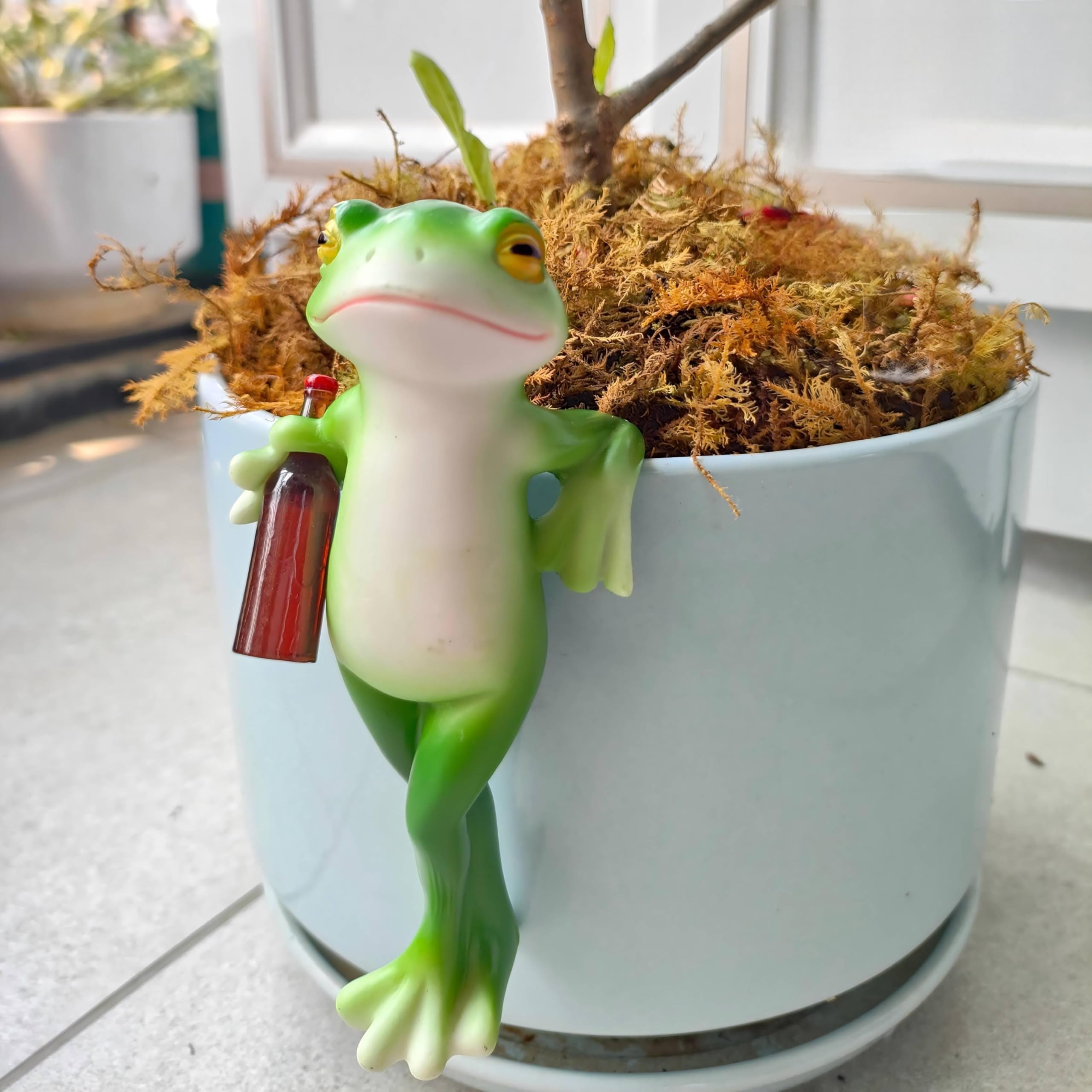 Lindas figuras de rana trepadora para maceta, escultura de rana colgante de resina, estatua al aire libre, decoración de macetas p
