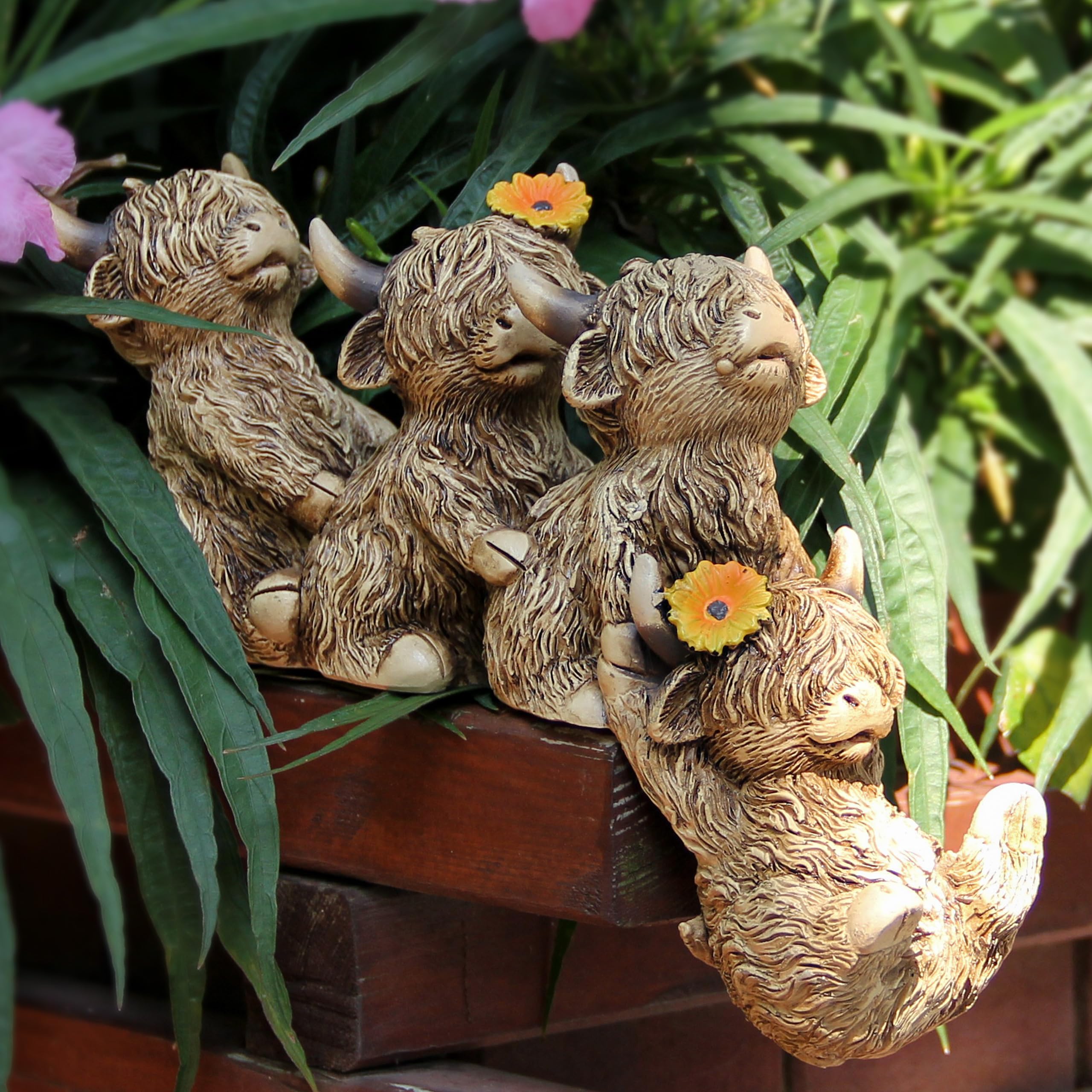 Estatua de vaca de jardín de las tierras altas para decoración al aire libre, estatua de vaca de las tierras altas, estatua famili