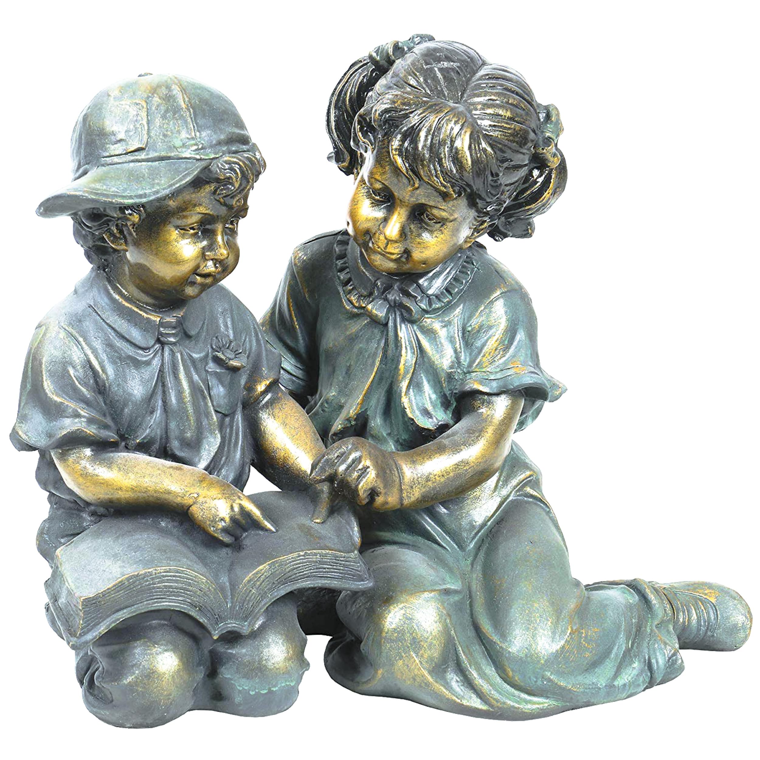 Alpine Corporation GXT258A – Libro de lectura para niños y niñas finamente esculpidos para exteriores, estatua de jardín, 19 pulga