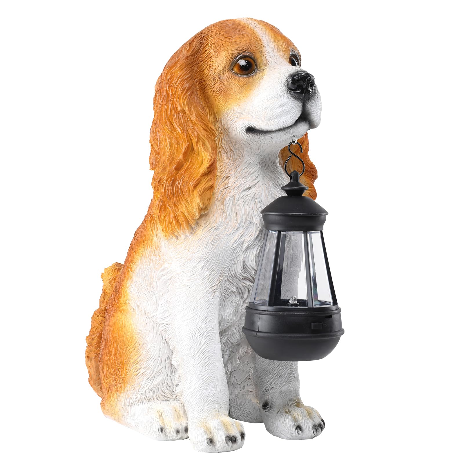 Afirst Estatua de jardín para perros, decoración al aire libre con linterna solar, bonita figura de cocker spaniel americano, ador
