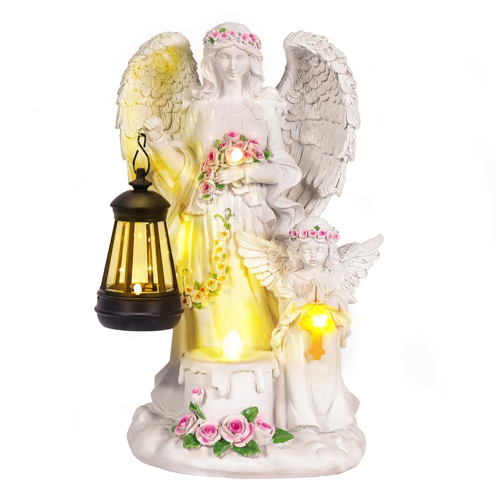 Estatua de ángel para exteriores con luz solar, decoración de jardín de resina duradera para patio, césped o paisaje de patio tras