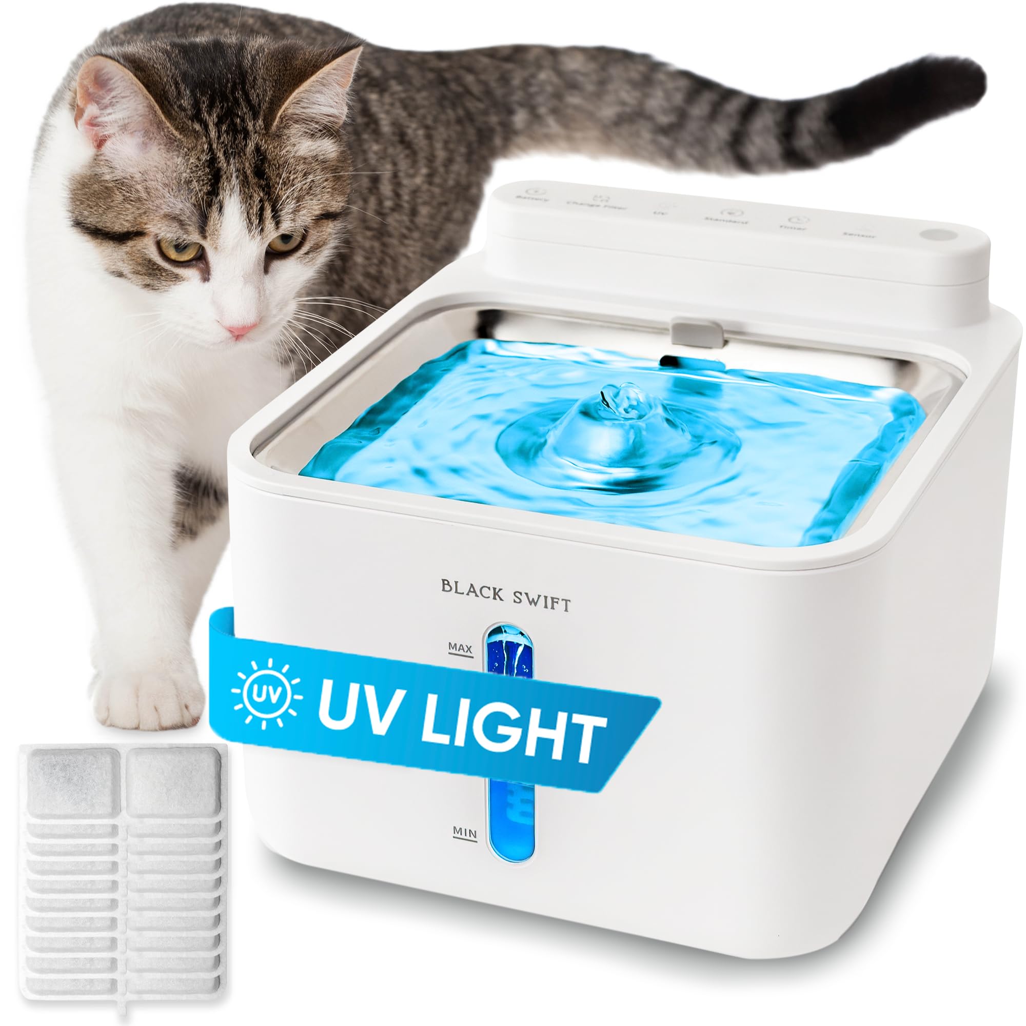Fuente de agua para gatos con luz UV, acero inoxidable, 0.85 galones, sin BPA, fuente de interior para mascotas para gatos y perro