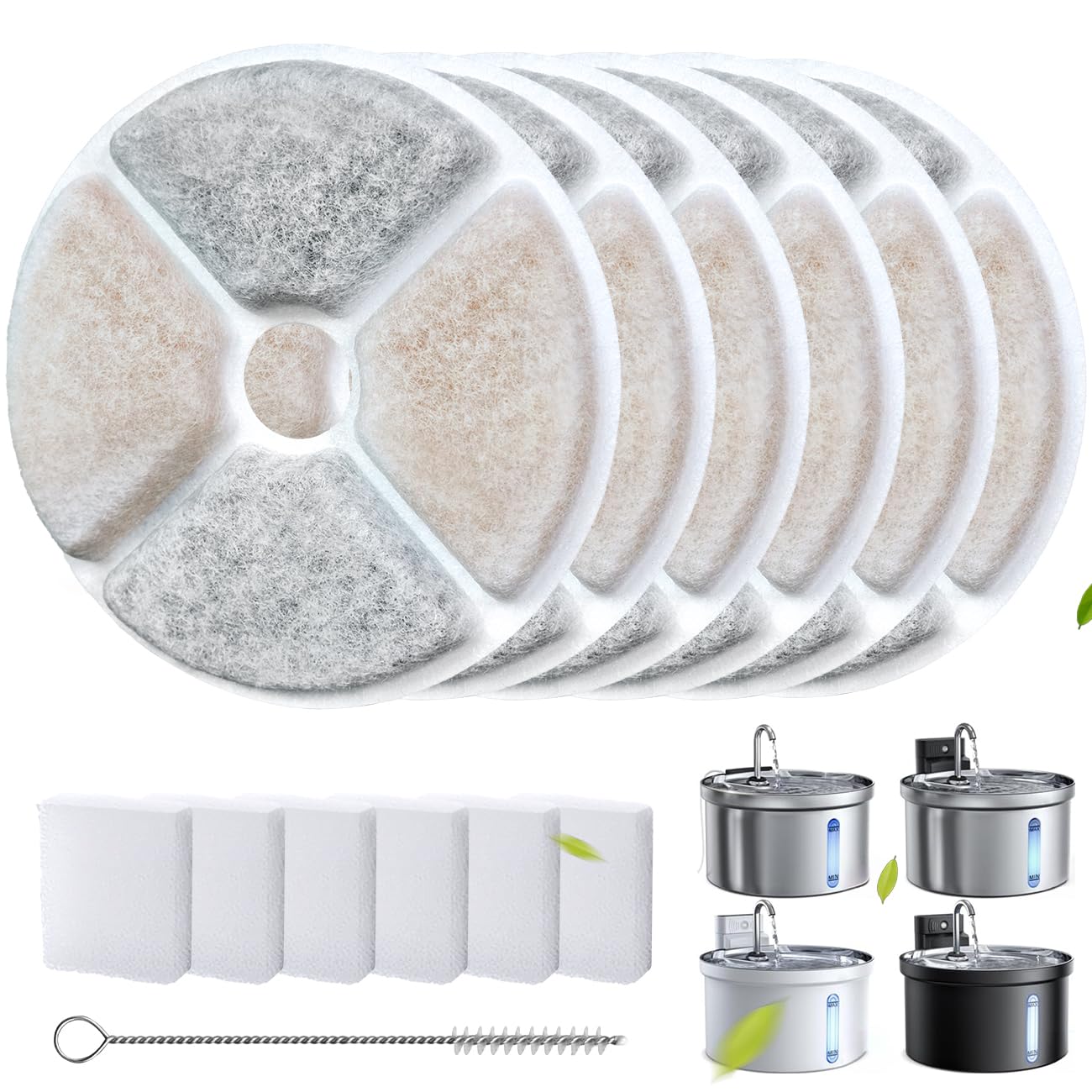 Juego de 6 fuentes de agua para gatos compatibles con FeelNeedy [FN-W08L] y [FN-W06] Fuente de agua para gatos, 6 filtros, 6 espon