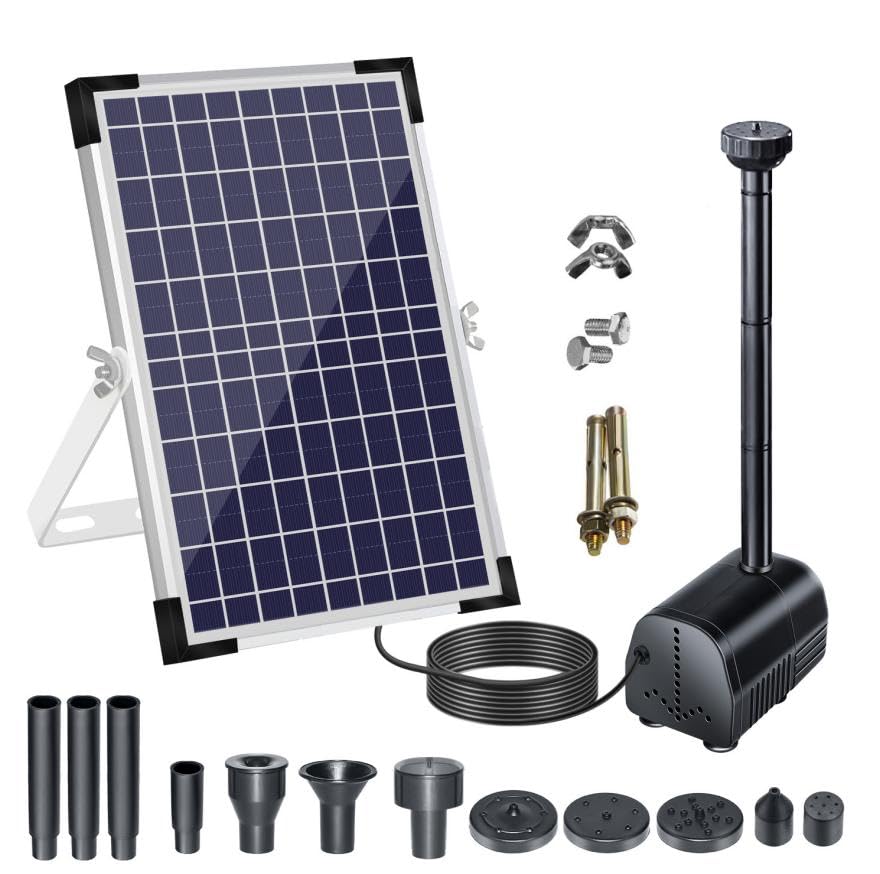 Antfraer Bomba de fuente solar, bomba de agua solar de 25 W, flujo ajustable de 410 GPH, fuente de estanque con cable de 17 pies y