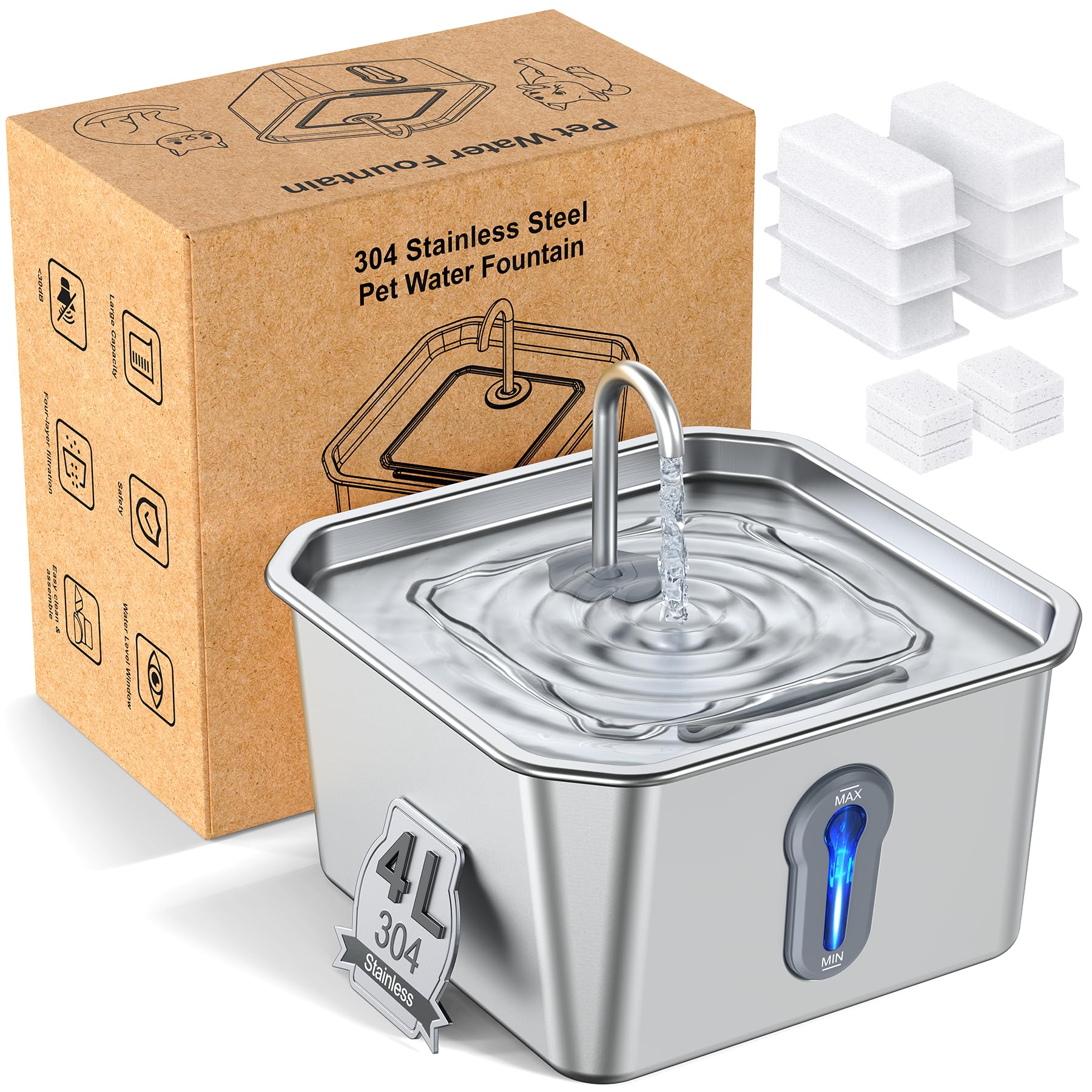 Ultra-Purification Large Dog Water Fountain SS304,12LDog Drinking Bowl Dispenser with Visual Window,Widely Drinking Area,Triple Wa