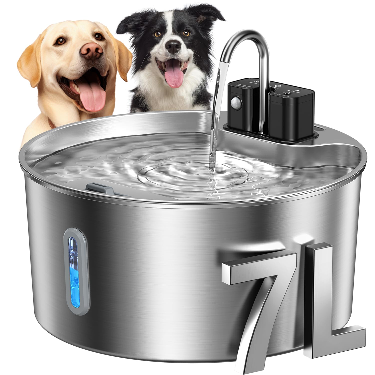 Fuente de agua para perros grandes: 7L/236oz/1.8G fuente para perros de acero inoxidable – Fuente de agua para gatos grandes para