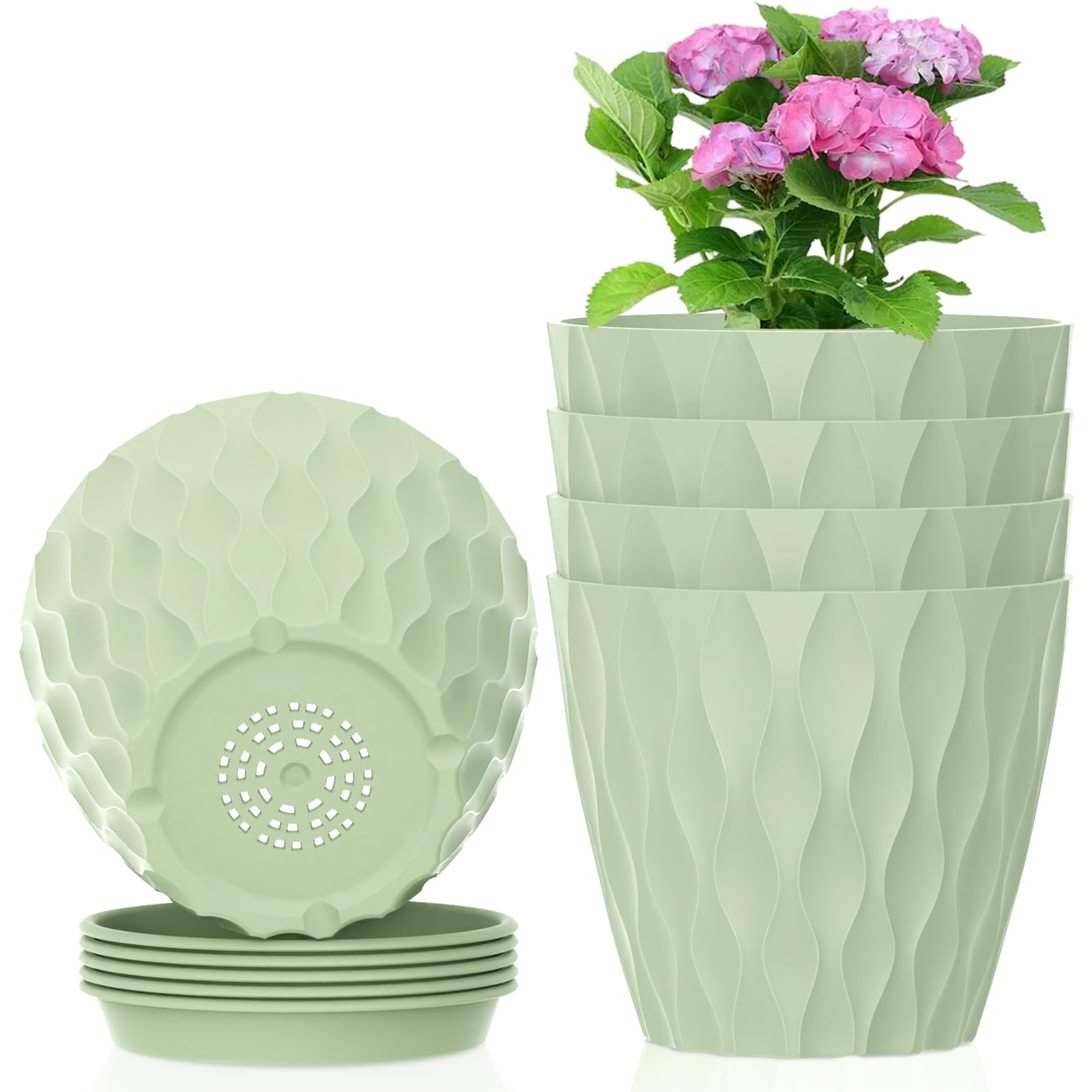 Macetas pequeñas de plástico de 4 pulgadas, paquete de 5 macetas de ondas de agua para plantas de interior, macetas con agujeros d