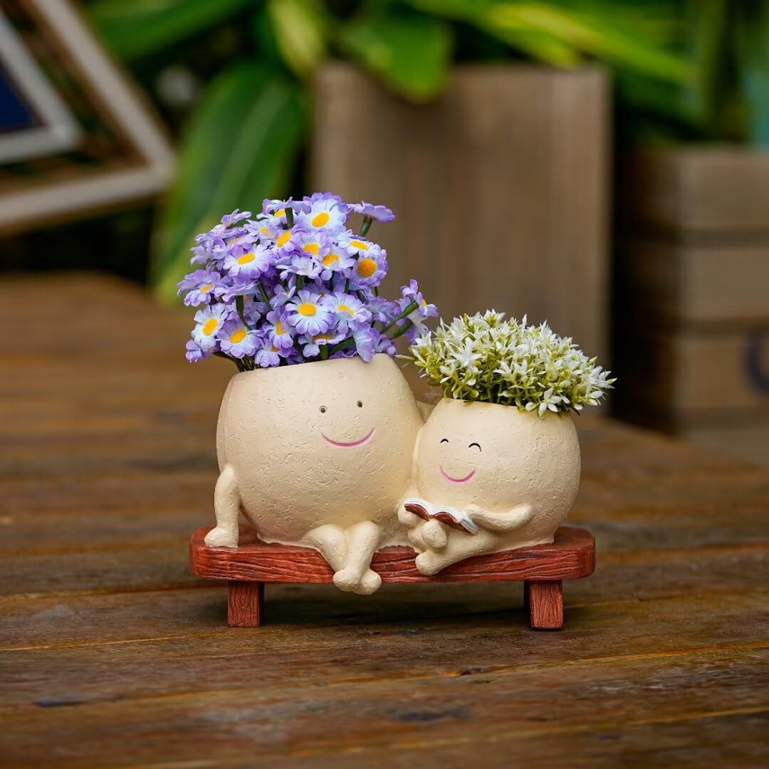 Macetas de cara sonriente, macetas de doble cara para plantas de interior, macetas suculentas con agujero de drenaje, maceta decor