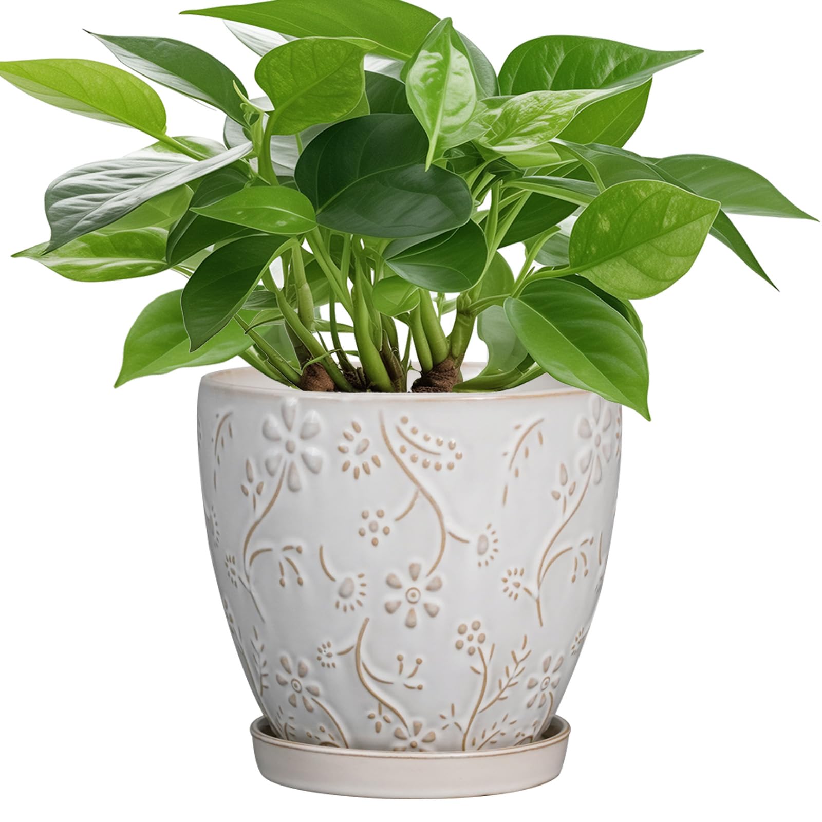 Maceta de cerámica de 6 pulgadas para plantas de interior y exterior, maceta redonda con orificio de drenaje y platillo para decor