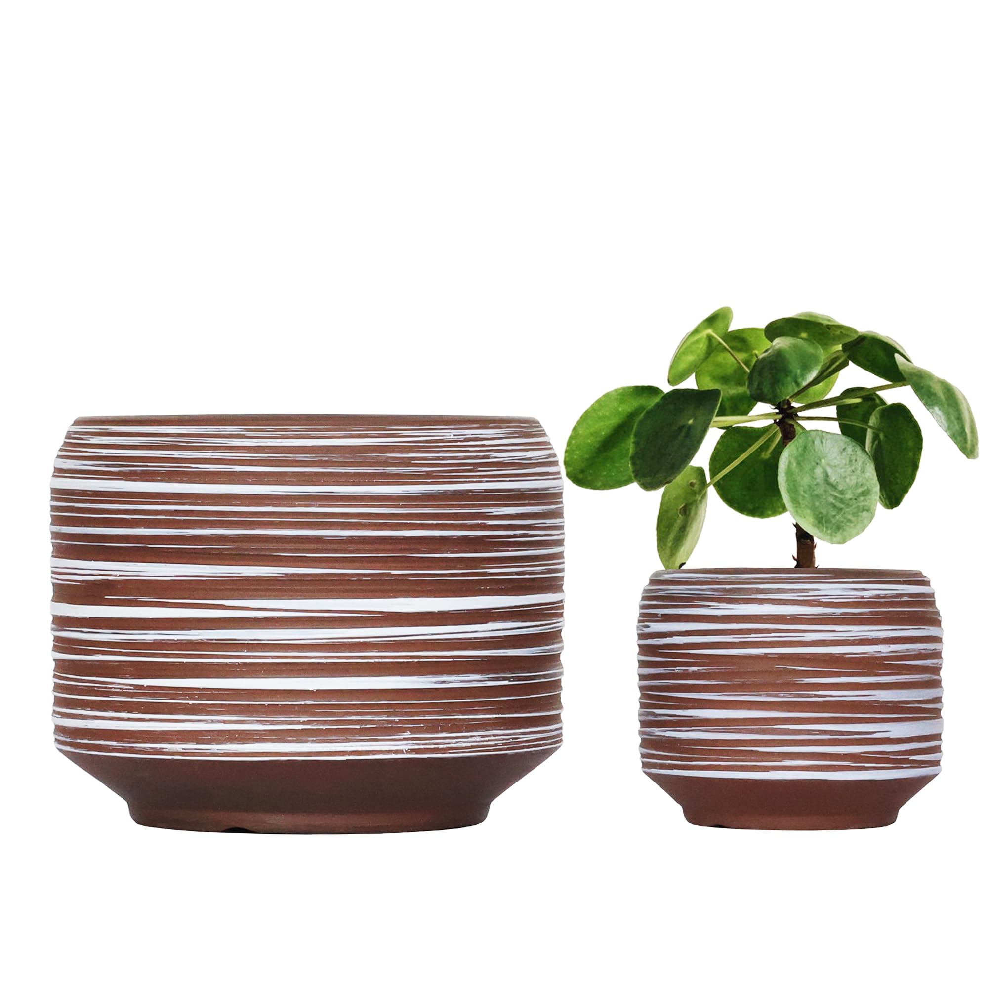Gepege Macetas de cerámica de 6 pulgadas + 4 pulgadas para plantas de interior, macetas pequeñas y grandes redondas para orquídeas
