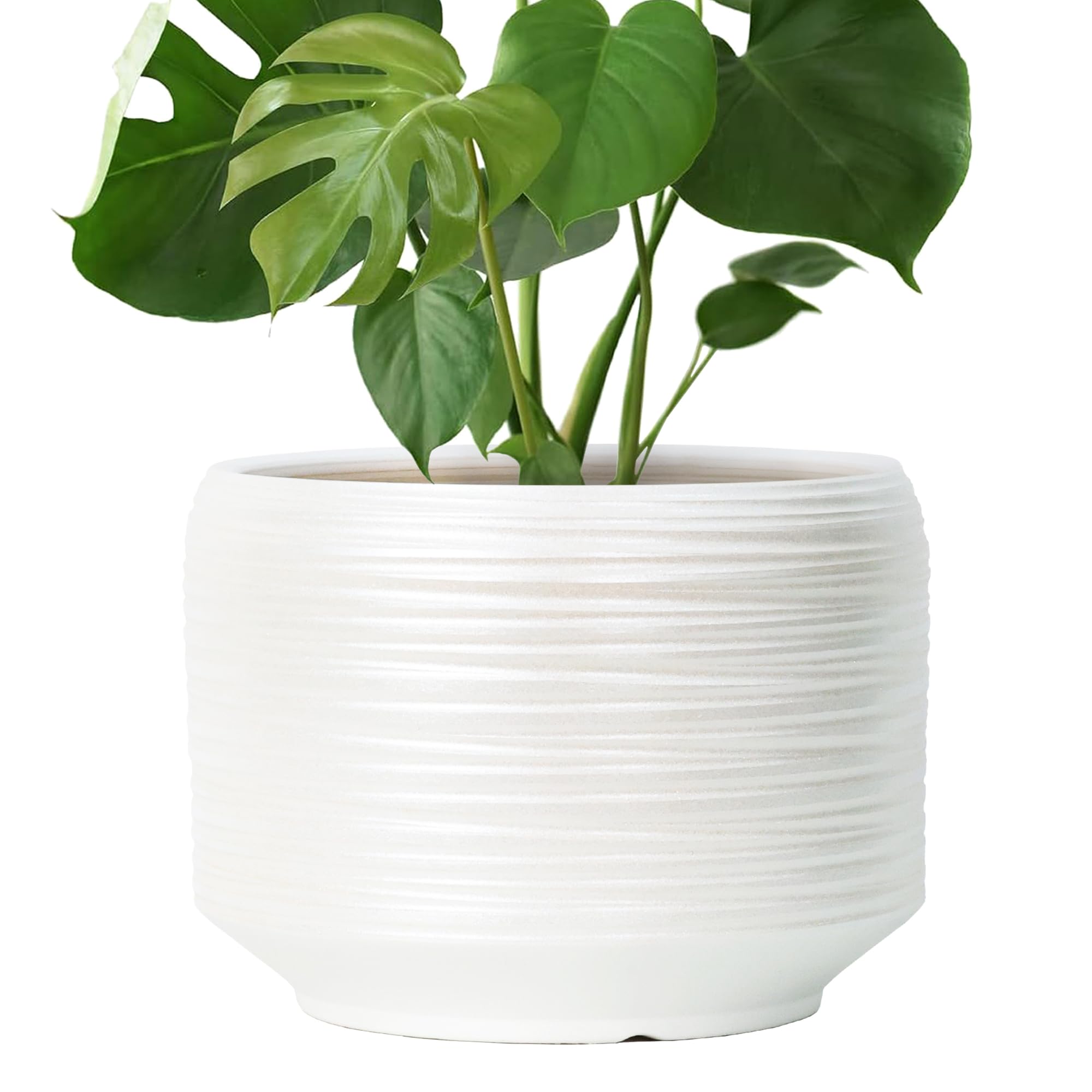 Maceta de cerámica de 10 pulgadas con drenaje, maceta grande para plantas de interior y exterior, maceta decorativa moderna para p