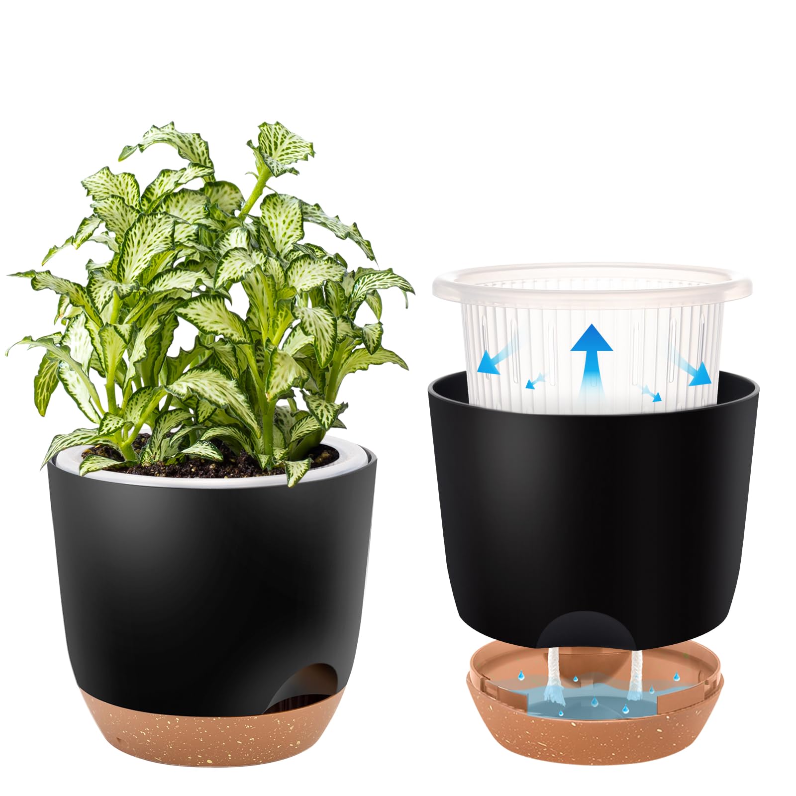 Macetas de riego automático de 5.8 pulgadas para plantas de interior con riego inferior, paquete de 2 macetas para exteriores con
