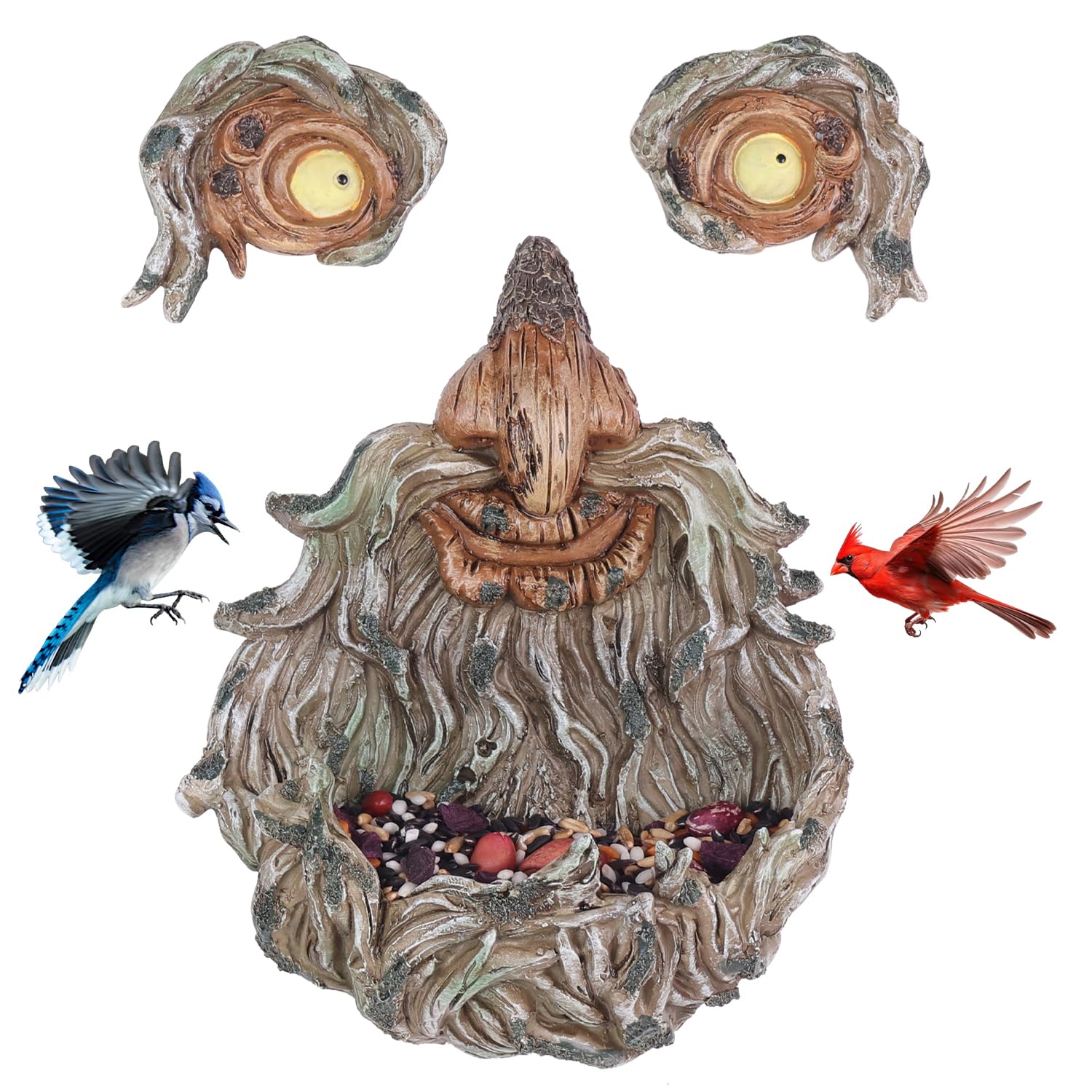 MEETYAMOR Decoración de jardín para exteriores, caras de árbol divertidas para decoración de comedero de pájaros, estatuas al aire