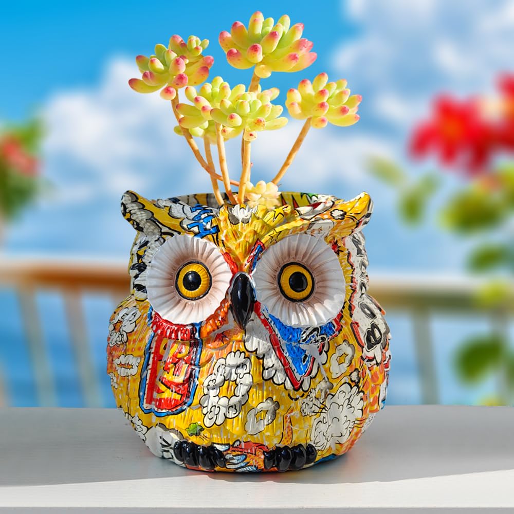 Maceta de búho amarillo, maceta de búho, macetas suculentas de búho, decoración de estatua de búho, macetas de animales para inter