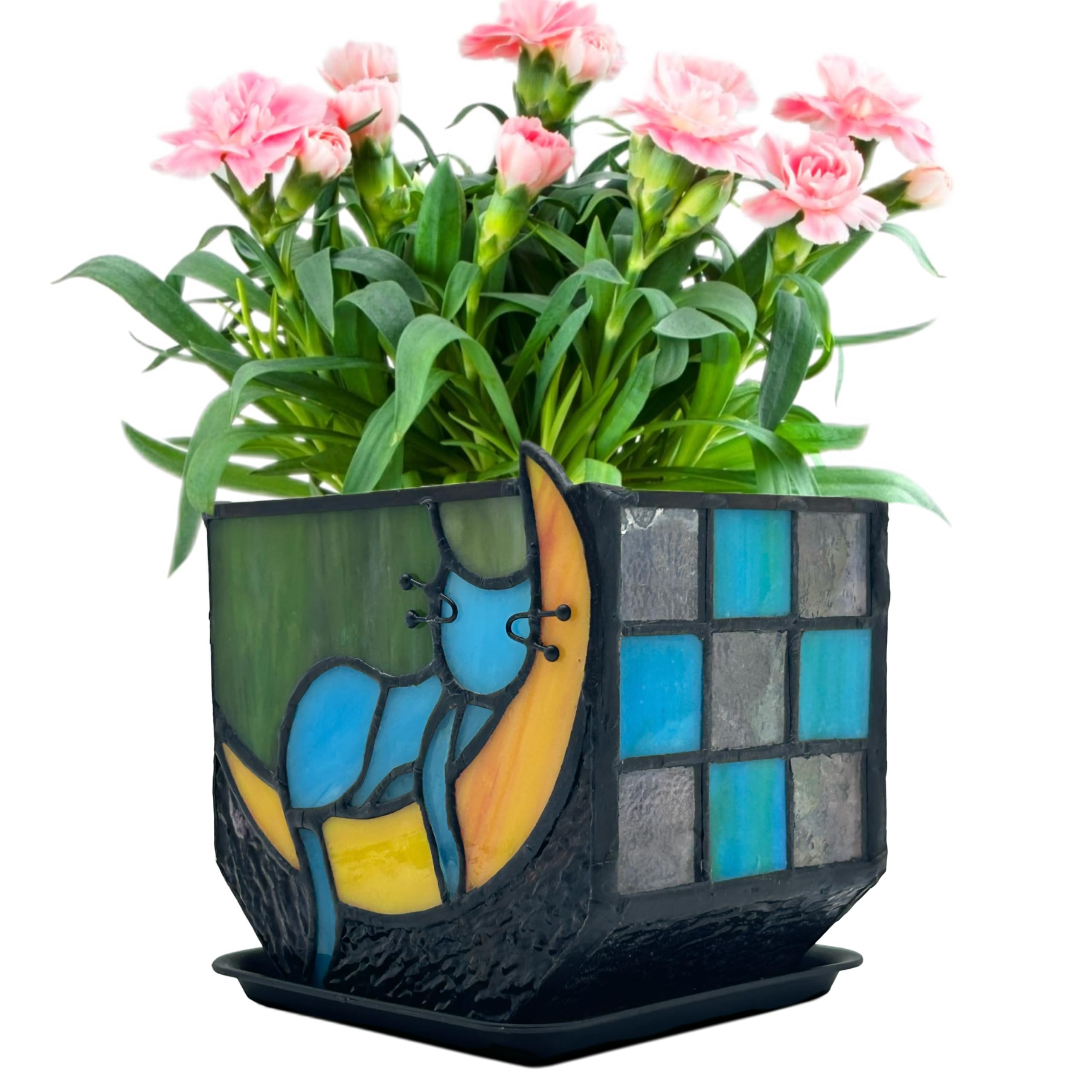 Tiffany – Macetero para gatos azules con diseño de luna dormida, con drenaje, bonitas macetas para gatos, macetas decorativas, mac