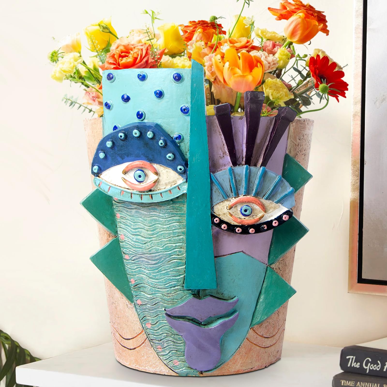 Mrlikale Macetas abstractas para la cara, maceta única con orificio de drenaje para plantas de interior y suculentas, maceta de má