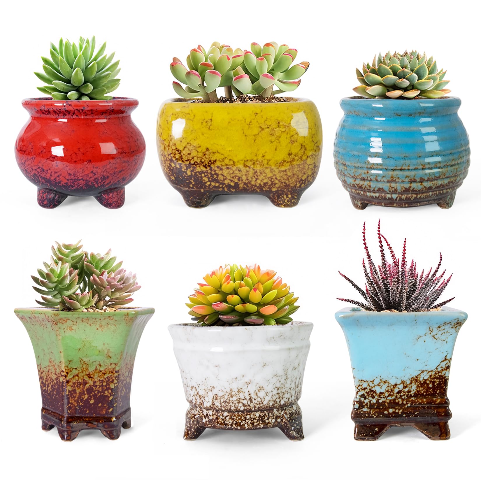 ARTKETTY Macetas para suculentas, maceta pequeña para suculentas con drenaje, paquete de 6, macetas de cerámica para cactus para i