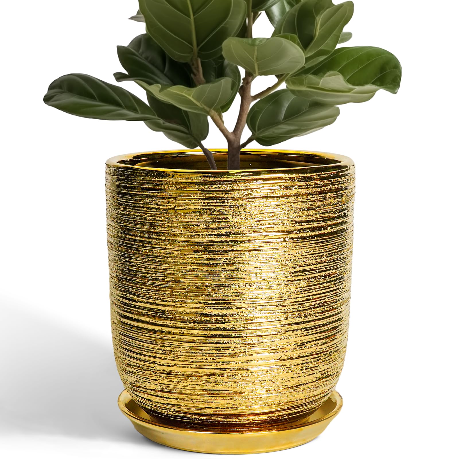 Maceta de cerámica para plantas de interior, maceta de 10 pulgadas con orificio de drenaje y platillo, maceta decorativa redonda p