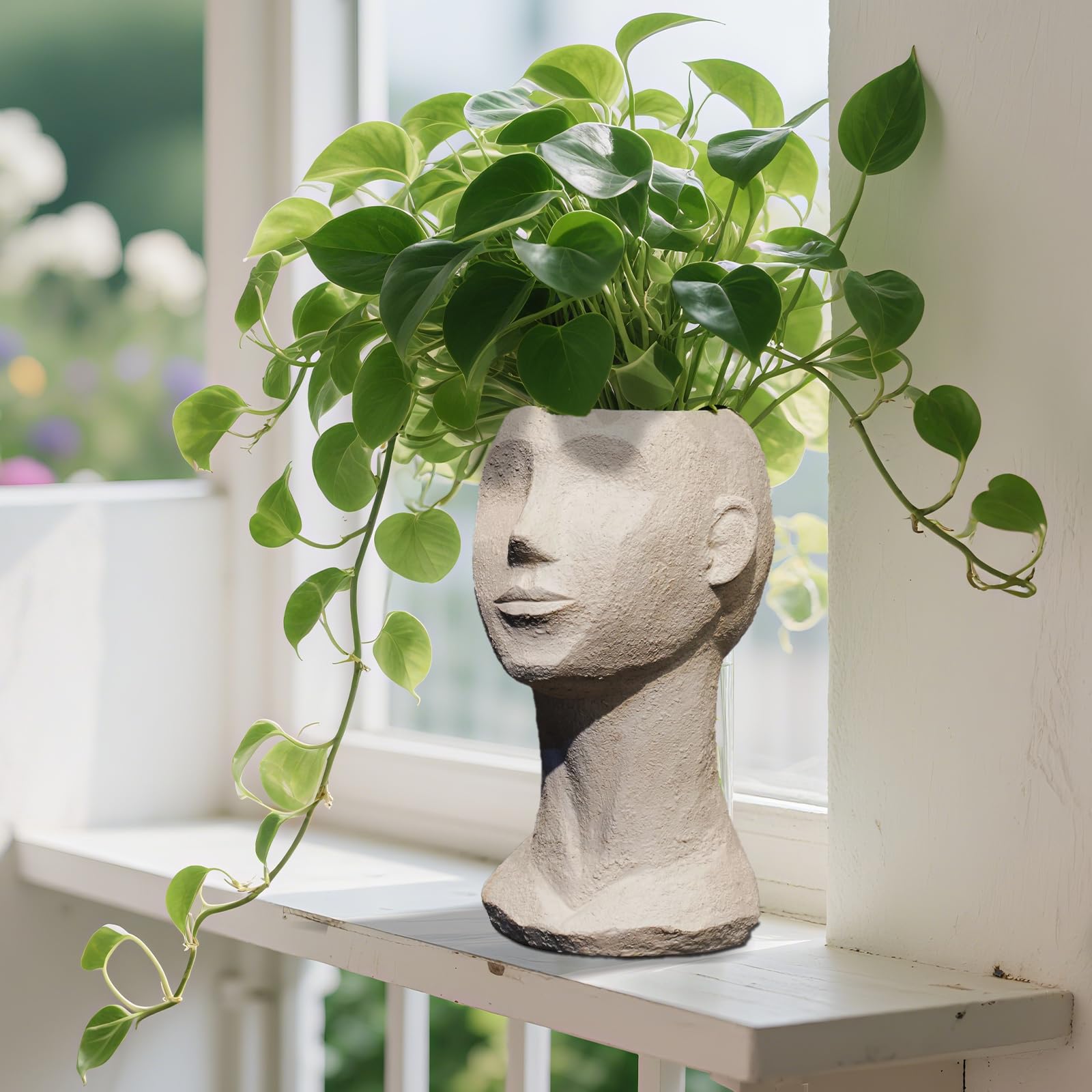 Floreros con diseño de flores, florero de estatua griega para decoración del hogar, sala de estar, busto griego, maceteros únicos