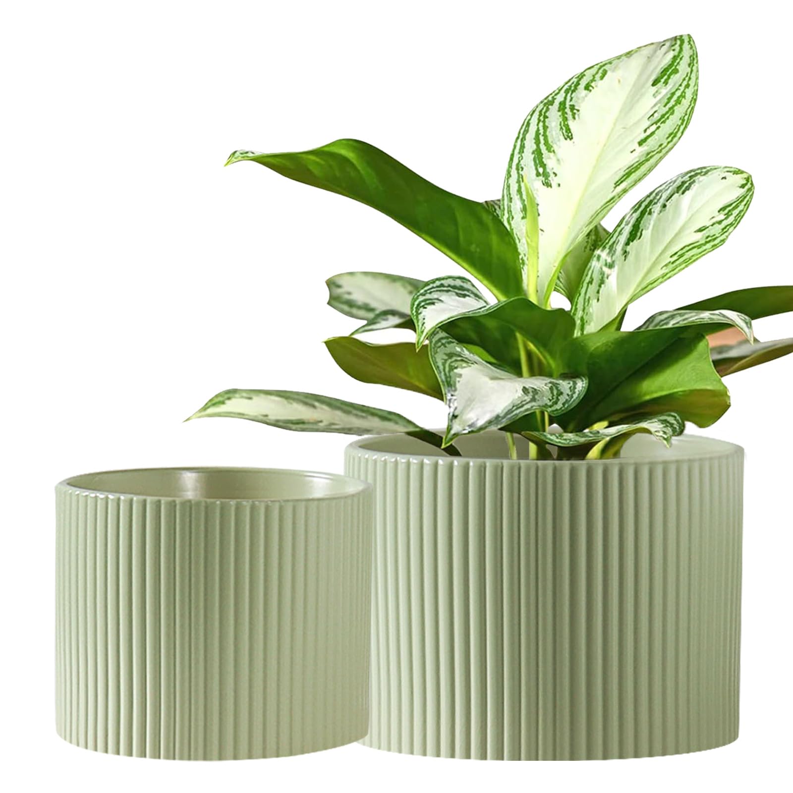 Macetas de cerámica, macetas de 8.1 + 6 pulgadas para plantas de interior, macetas modernas para plantas con drenaje, macetas cilí