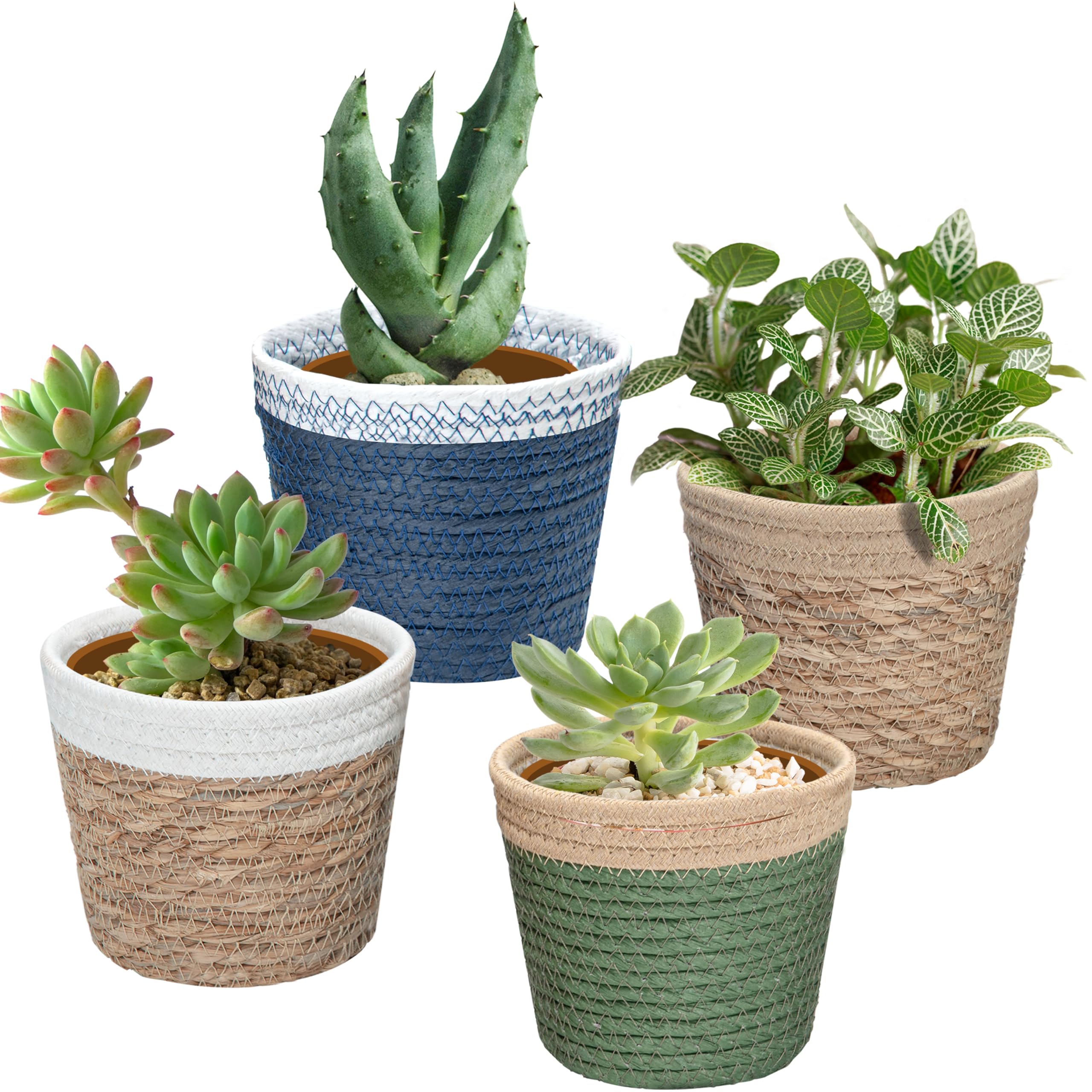 Juego de 4 macetas decorativas con forros para macetas de guardería de 4 a 5 pulgadas | Cubiertas para plantas de interior | Macet