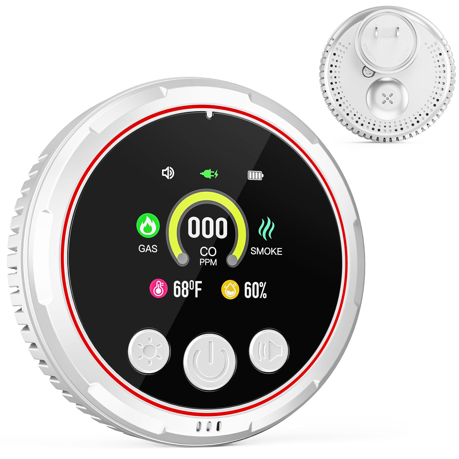 Paquete de 1 detector de humo y monóxido de carbono con pantalla LCD, alarma de 85 dB, botón de prueba, indicadores LED, detector