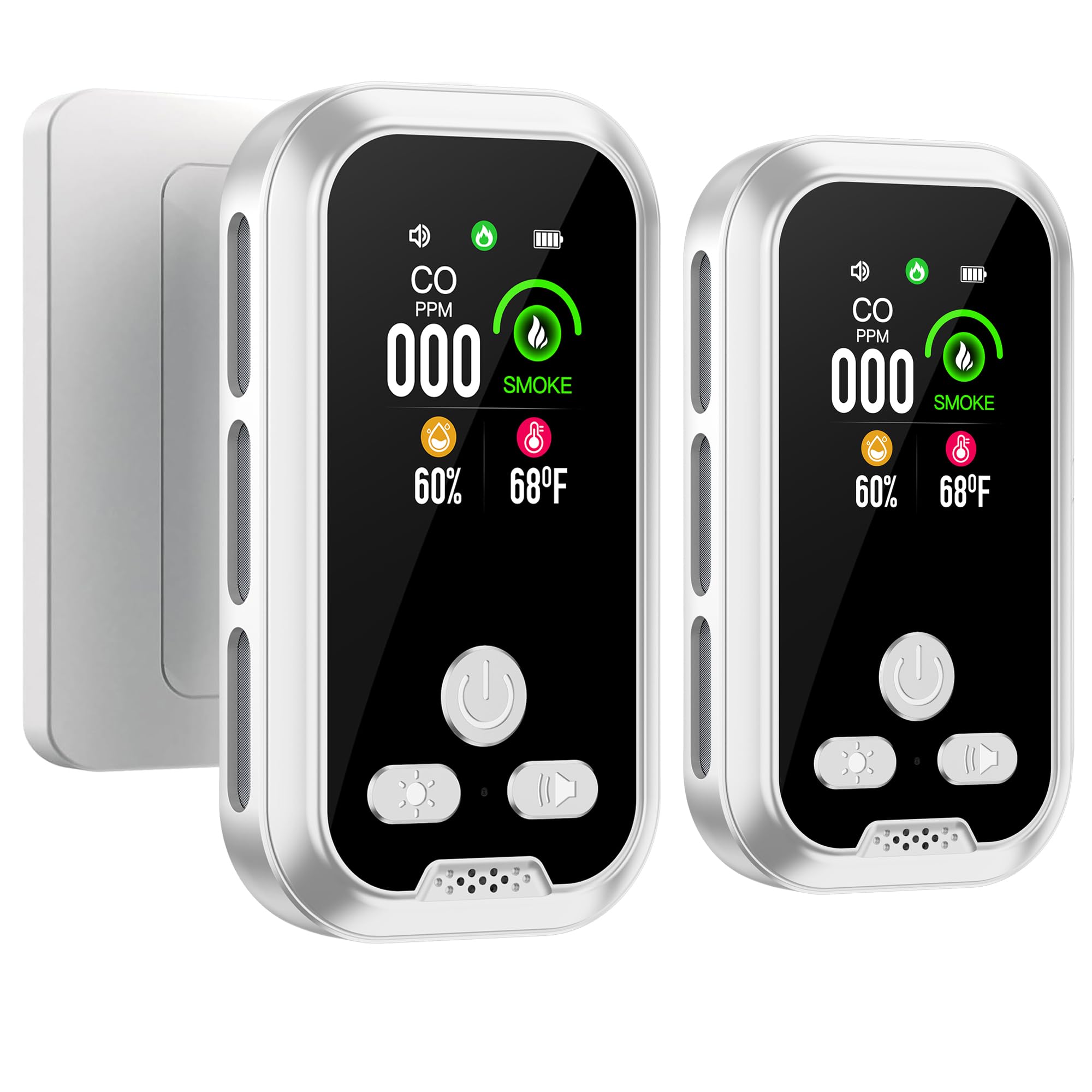 Detector de monóxido de carbono y combinación de alarma de humo, batería AA de Vzmcov alimentada con pantalla HD, detector de humo