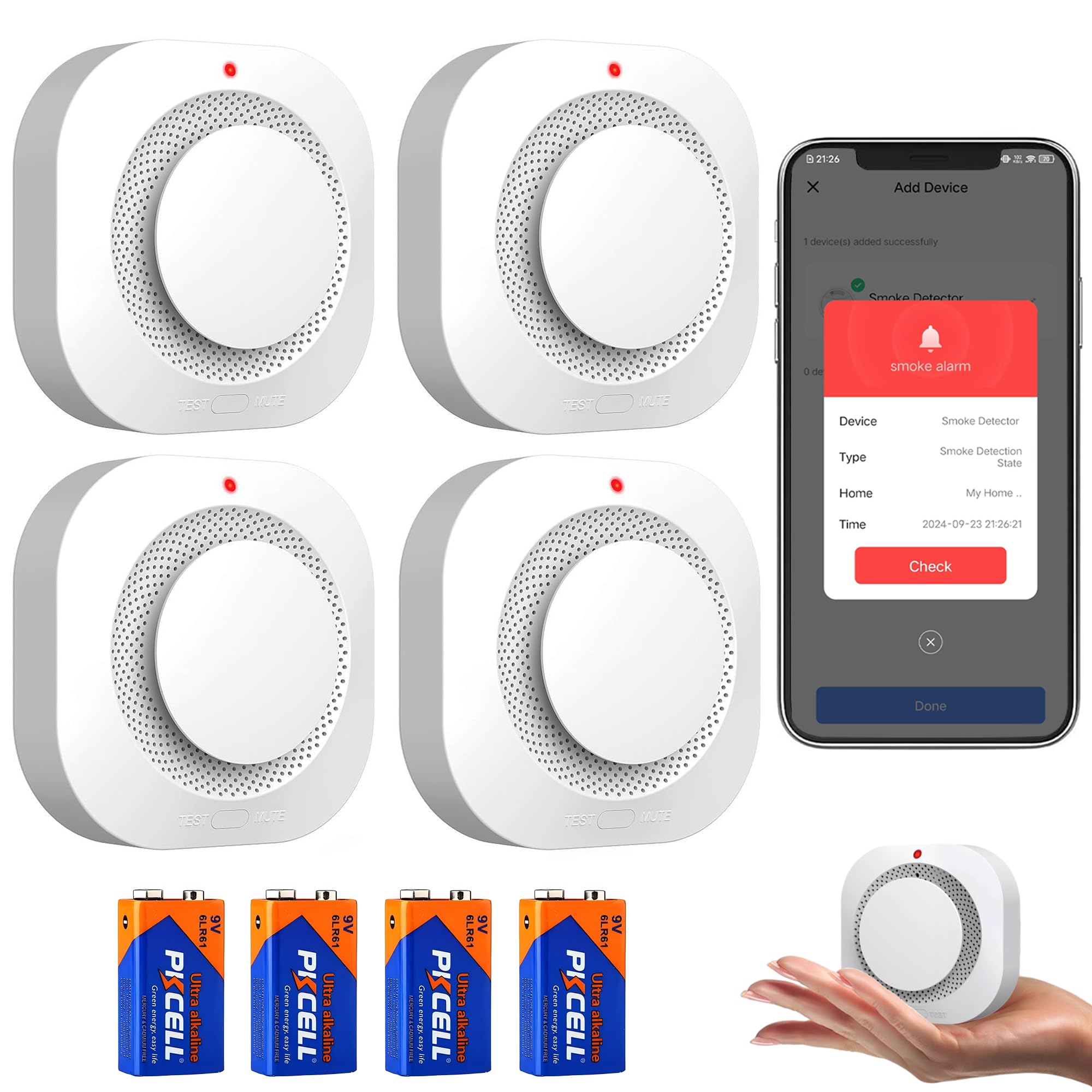 Detector de humo inteligente, alarma de humo Wi-Fi con batería reemplazable, detector de humo inalámbrico, alarmas de humo con not