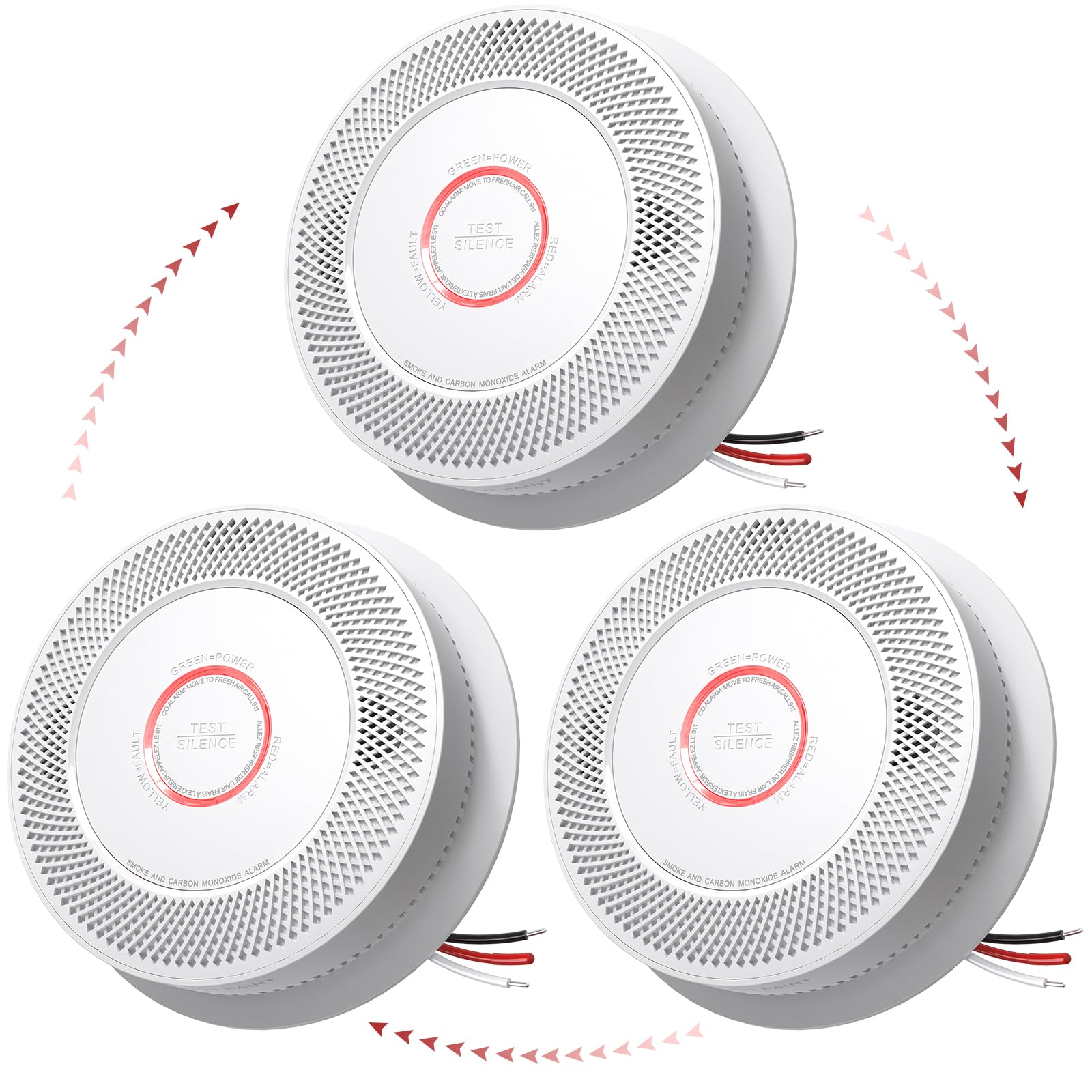 Detector de humo y monóxido de carbono cableado con alerta de voz, alarma de humo interconectada con cable y detector de monóxido