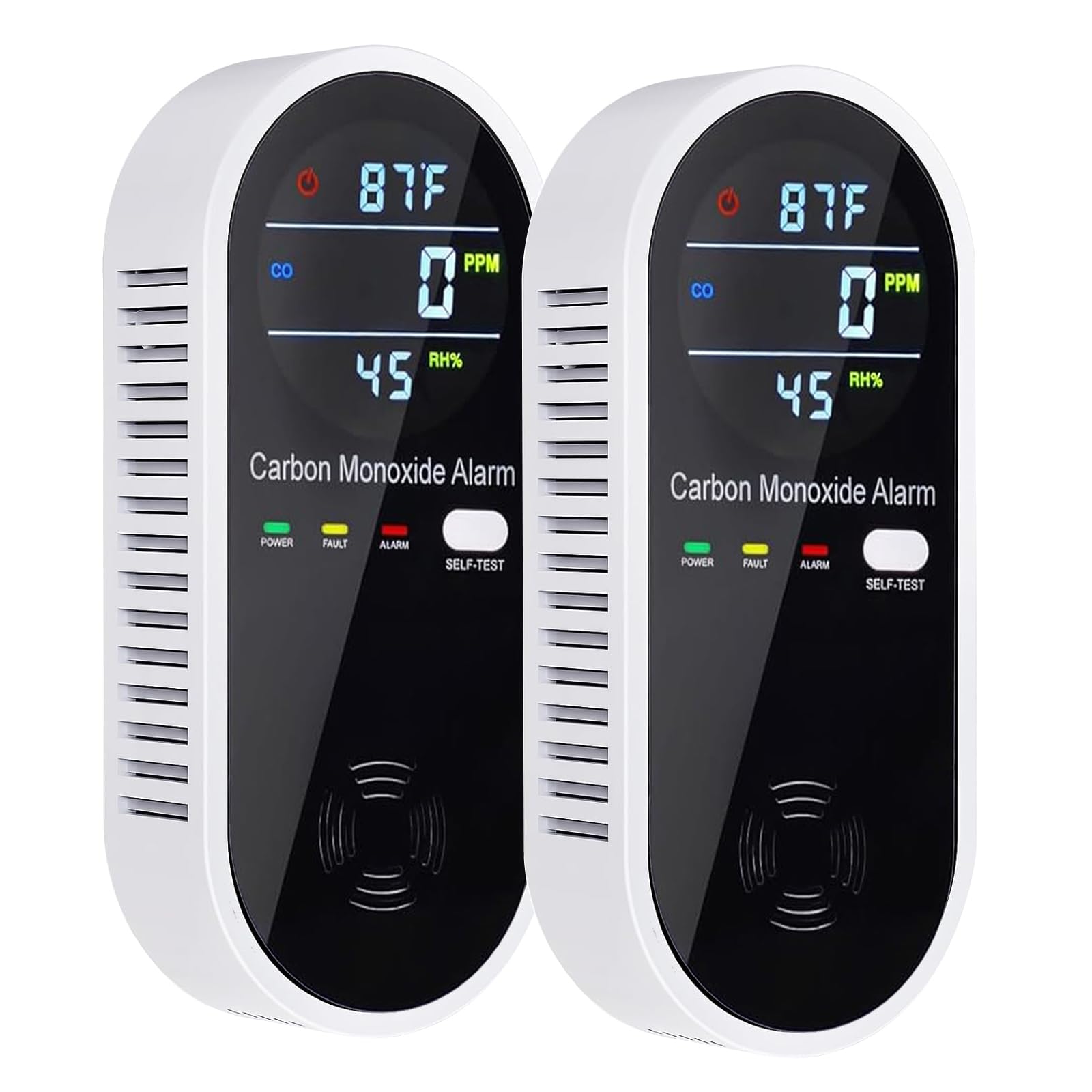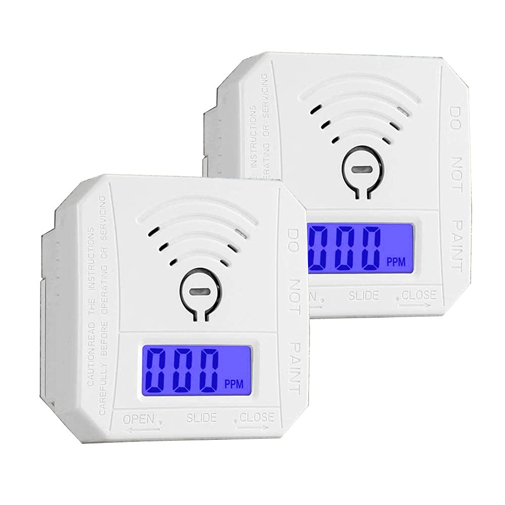 Detector de monóxido de carbono, paquete de 2, alarma de CO de alta precisión con advertencia de sonido y pantalla LCD digital (2