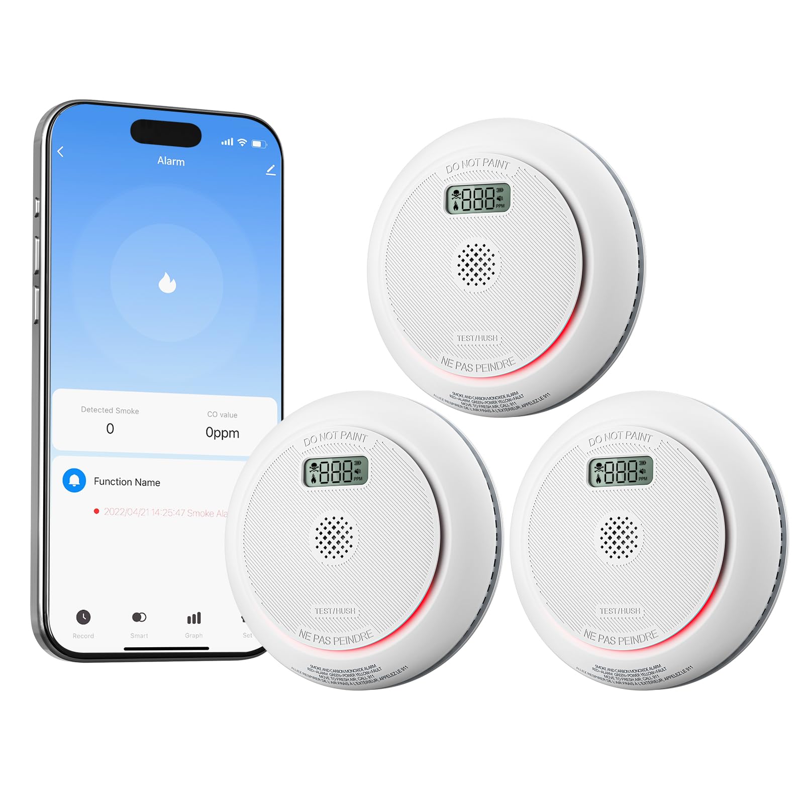 Combo de detector inteligente de humo y monóxido de carbono con pantalla digital, detector de alarma de incendio y CO WiFi 2 en 1,