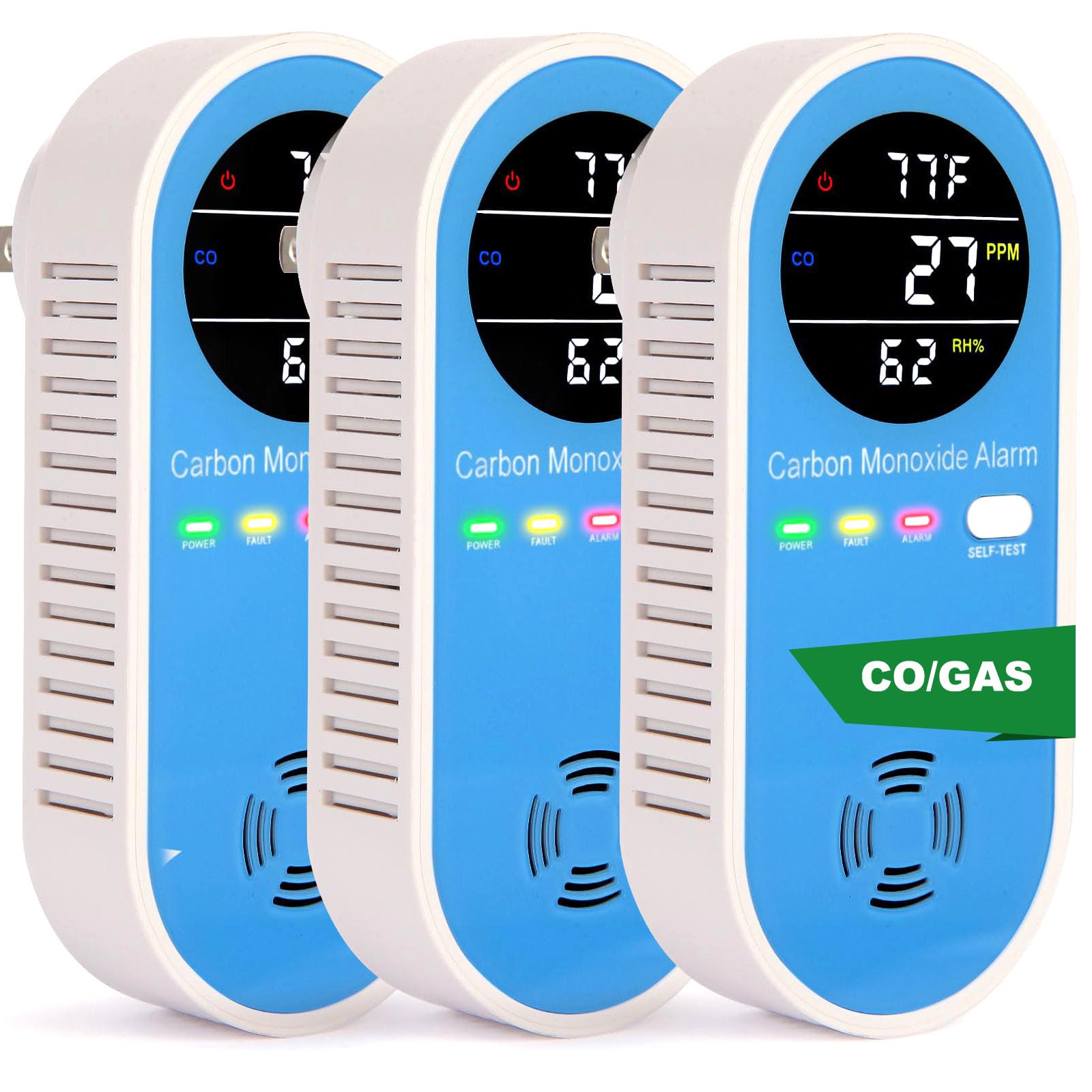 Detectores de monóxido de carbono 3 en 1 enchufables en la pared, detector de monóxido de carbono portátil para viajes, medidor de