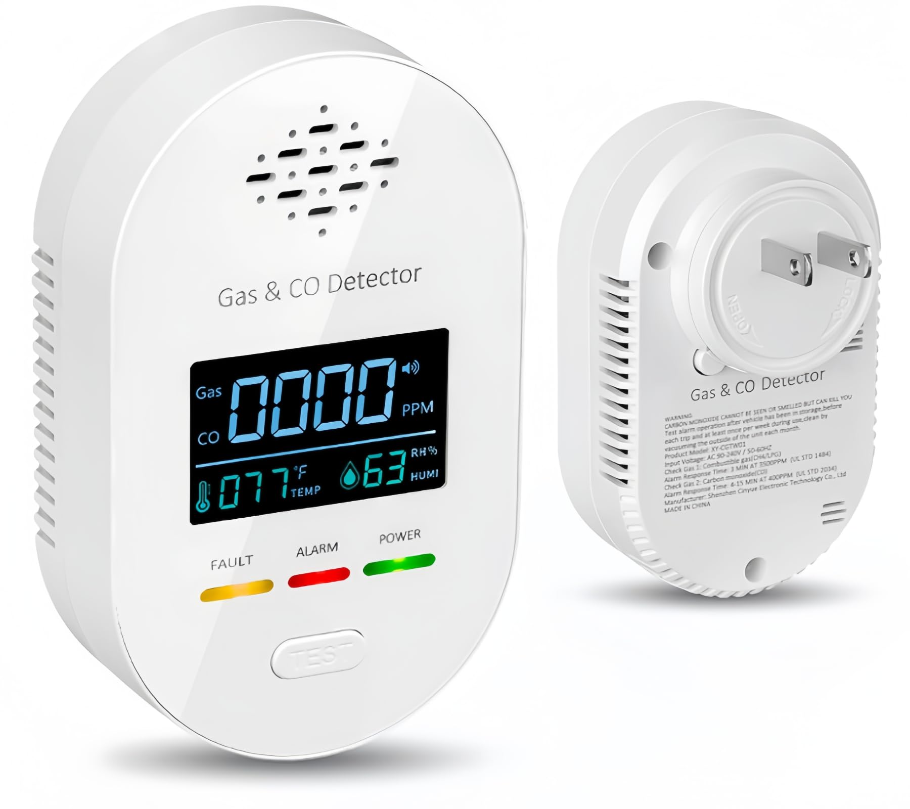 Detector de monóxido de carbono enchufable con batería de respaldo, detector de monóxido de carbono portátil para viajes, monitor