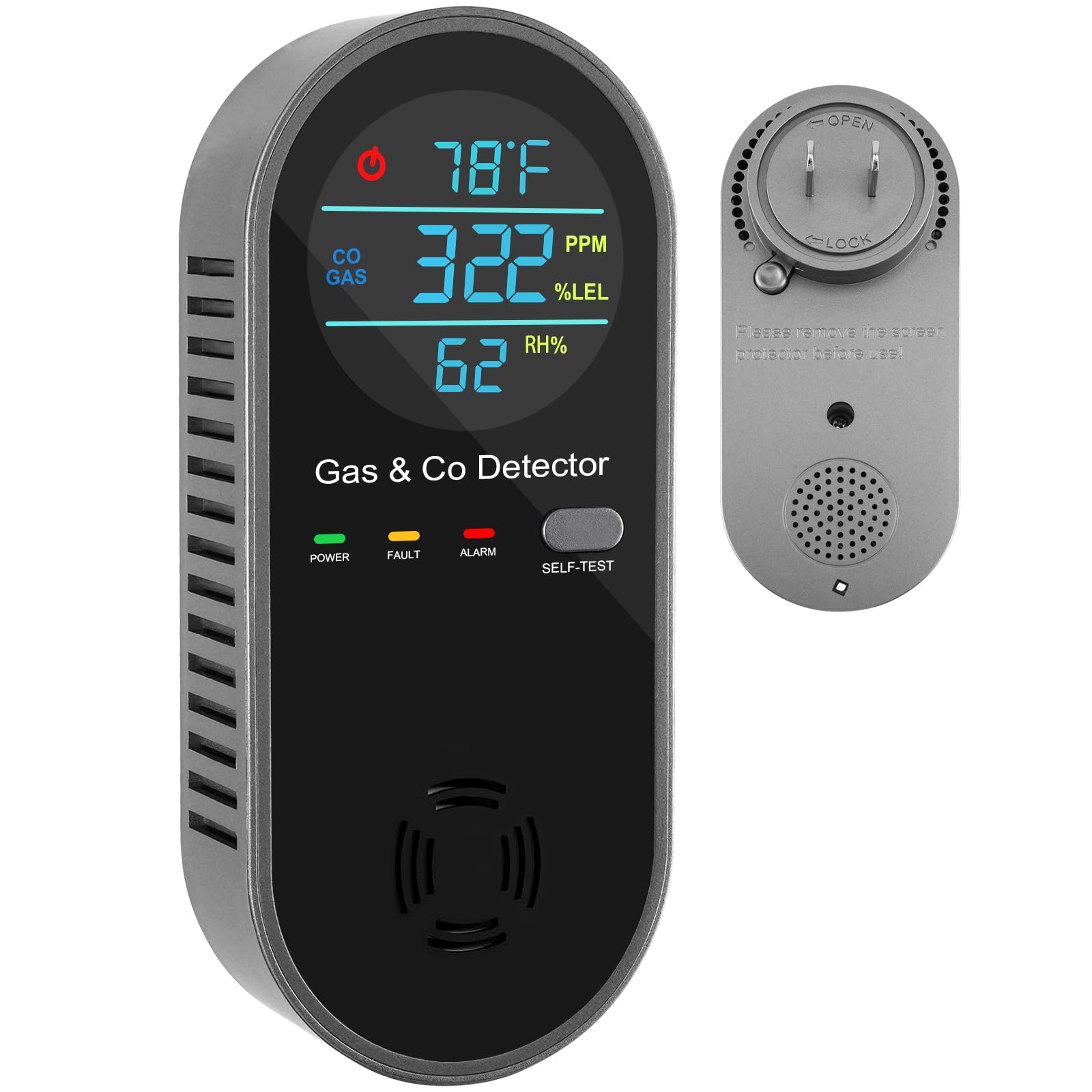 Detectores de monóxido de carbono enchufables, detector de fugas de gas natural 4 en 1 y detectores de monóxido de carbono con pan