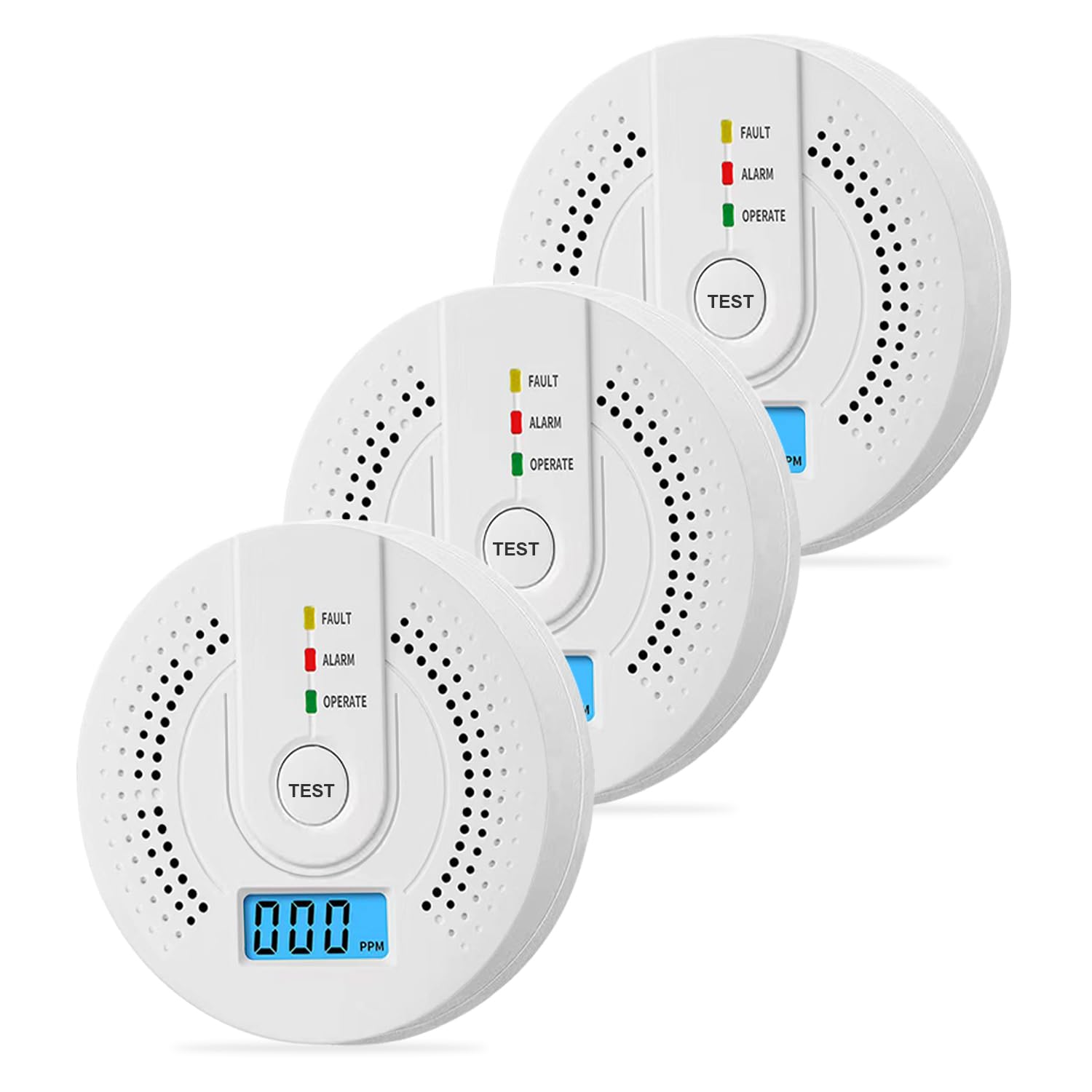 Detector de monóxido de carbono – Certificado UL 2034, pantalla LCD fácil de leer, funciona con pilas (3 AAA), rango de detección