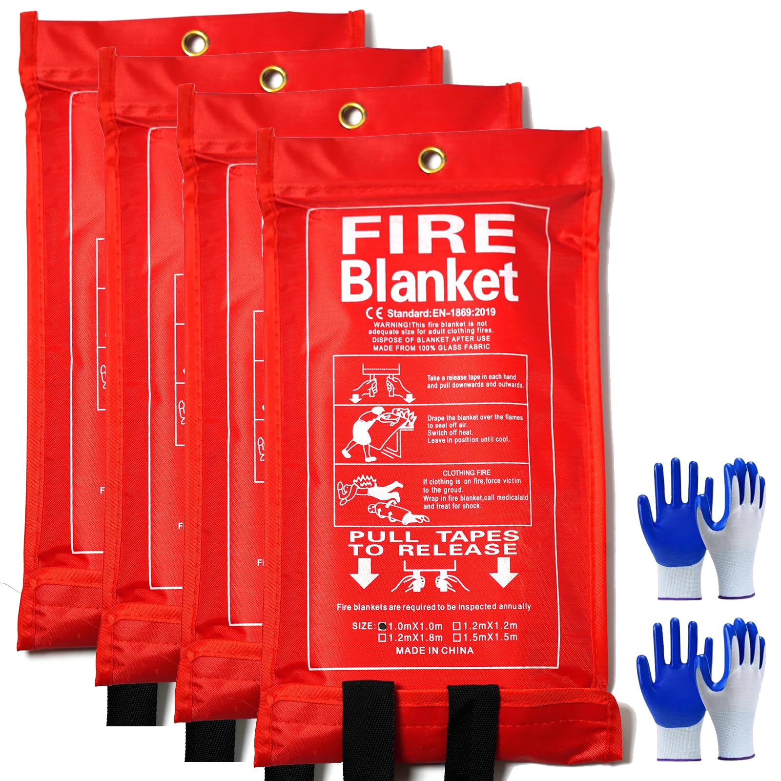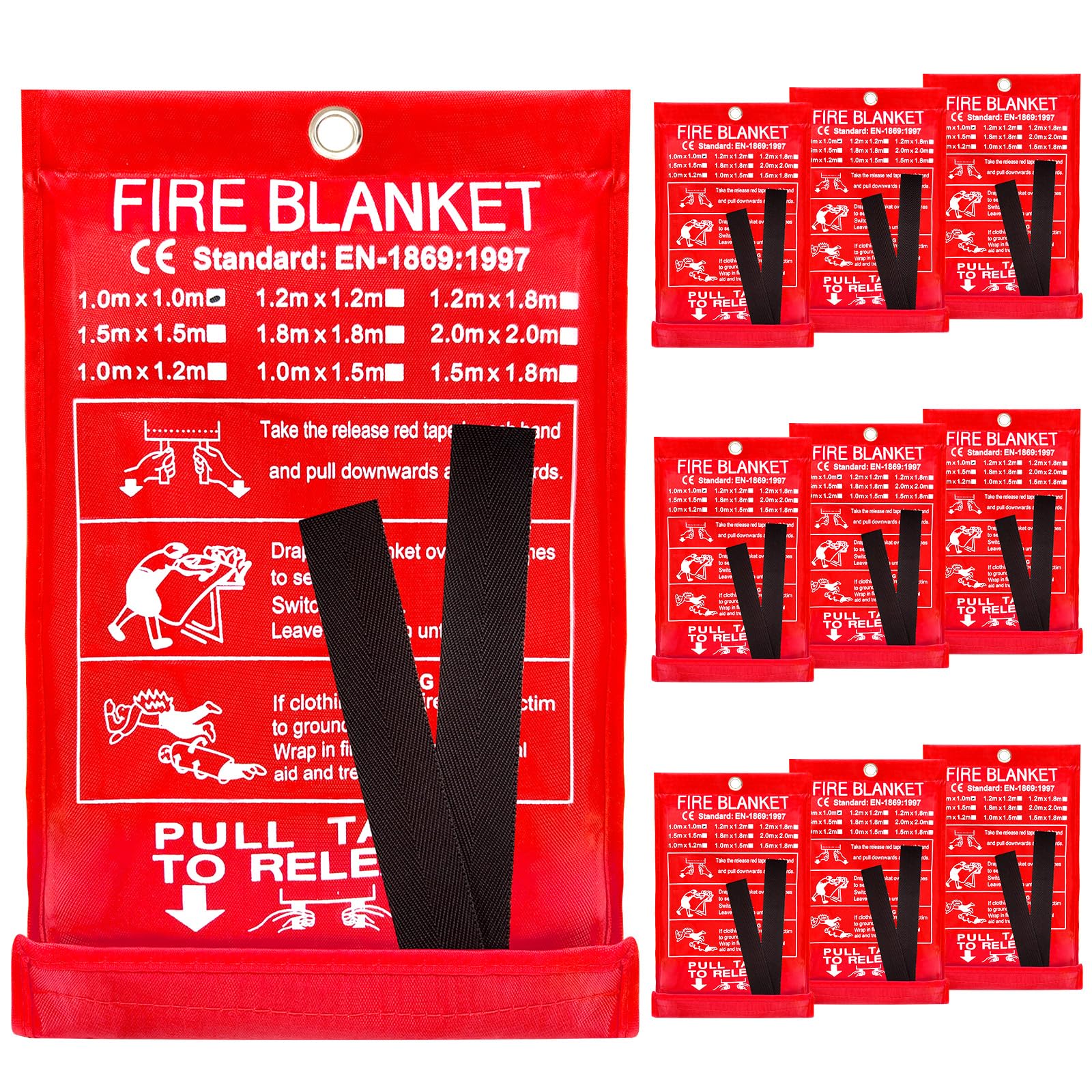 Paquete de 10 mantas de emergencia para el hogar, cocina, 39 x 39 pulgadas, gran protección ignífuga de fibra de vidrio para el ho