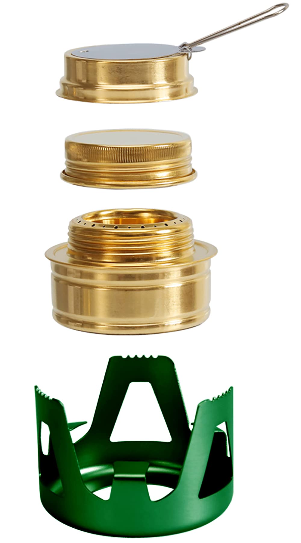 Mini estufa de alcohol, quemador de alcohol ligero de latón con soporte de aluminio para camping, senderismo y picnic