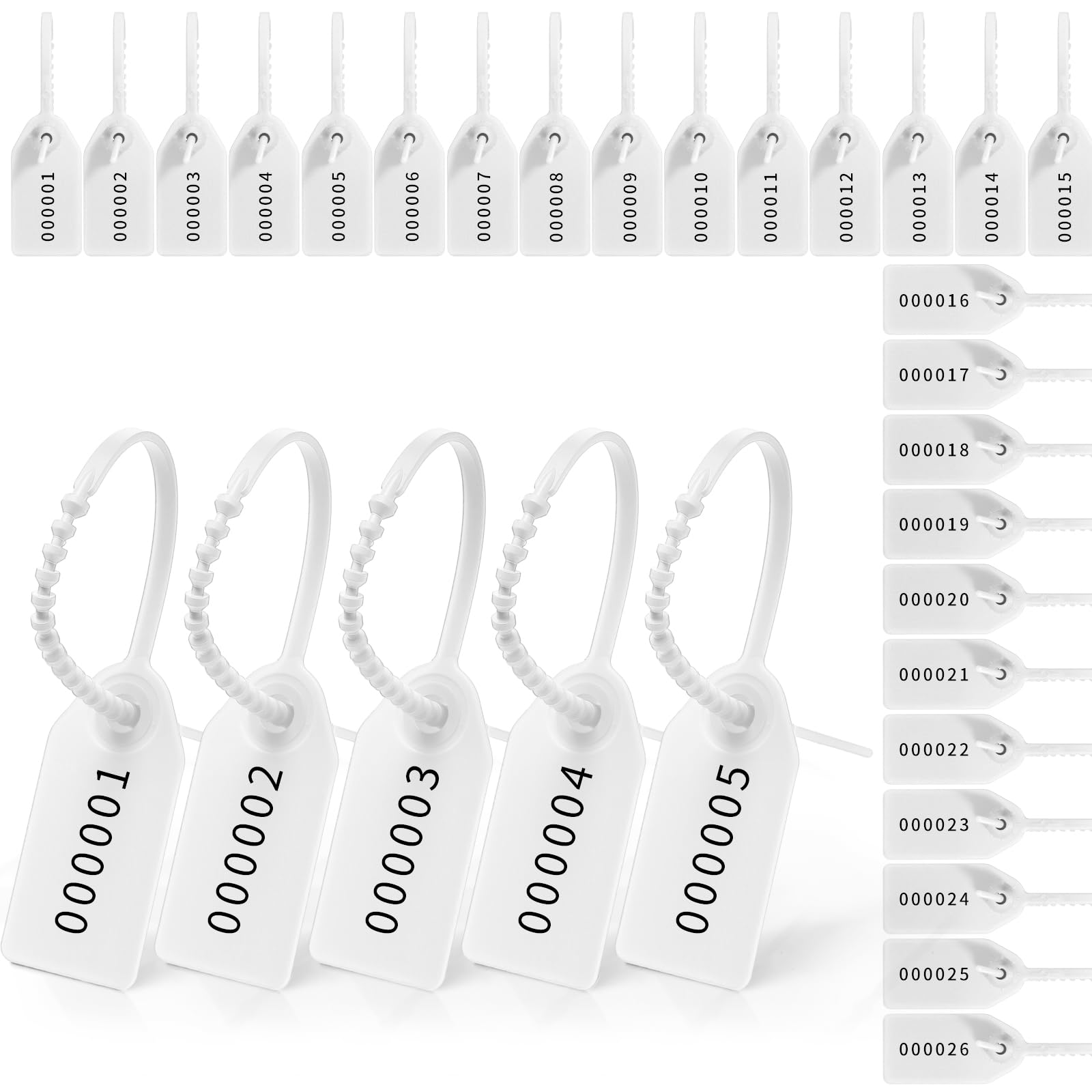 Nuanchu 100 sellos de plástico para extintores de incendios, etiquetas desechables con autobloqueo, 6.693 in de longitud (blanco)