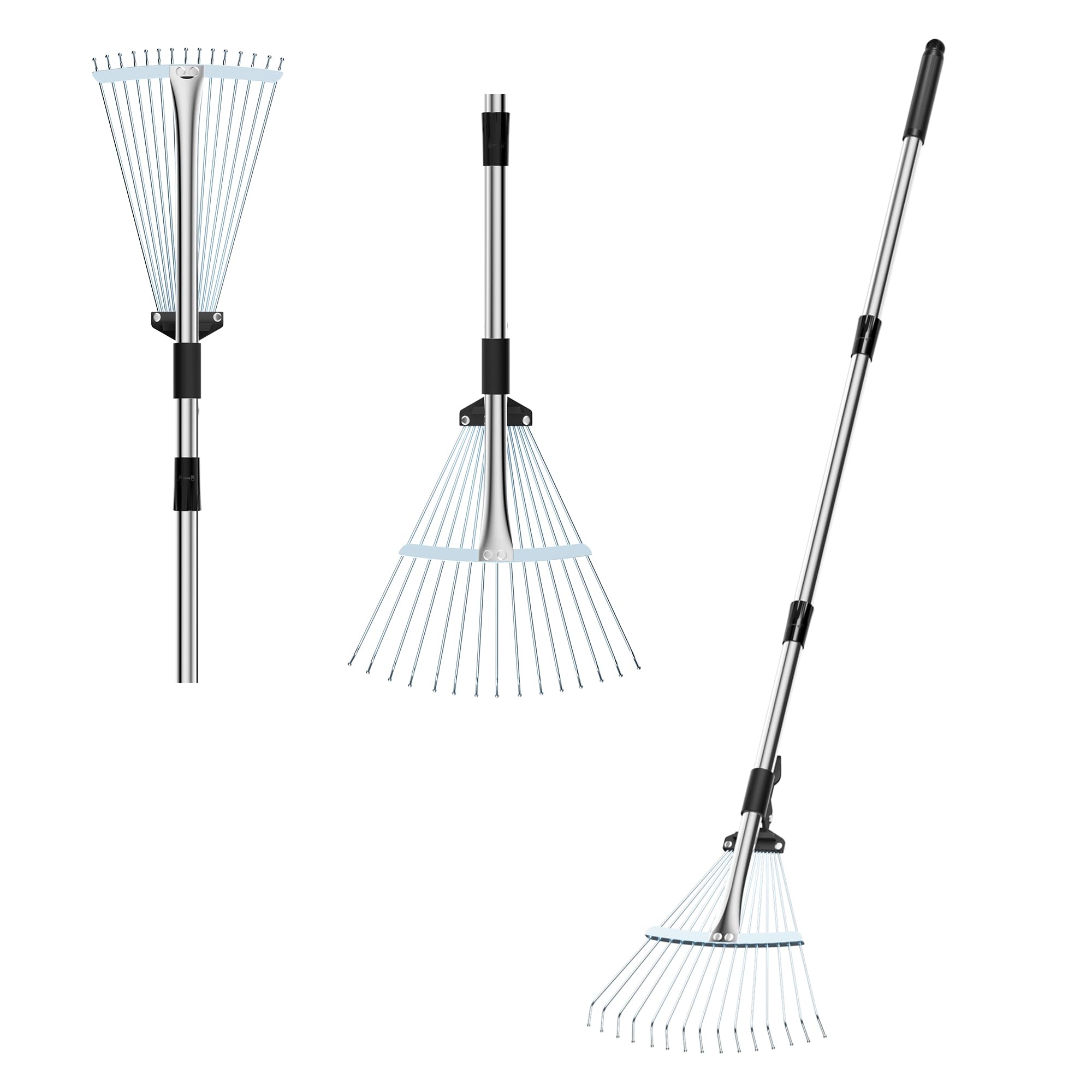 Rastrillo de acero inoxidable para hojas de jardín, rastrillo de metal fuerte para hojas, longitud ajustable de 37 a 53 pulgadas,