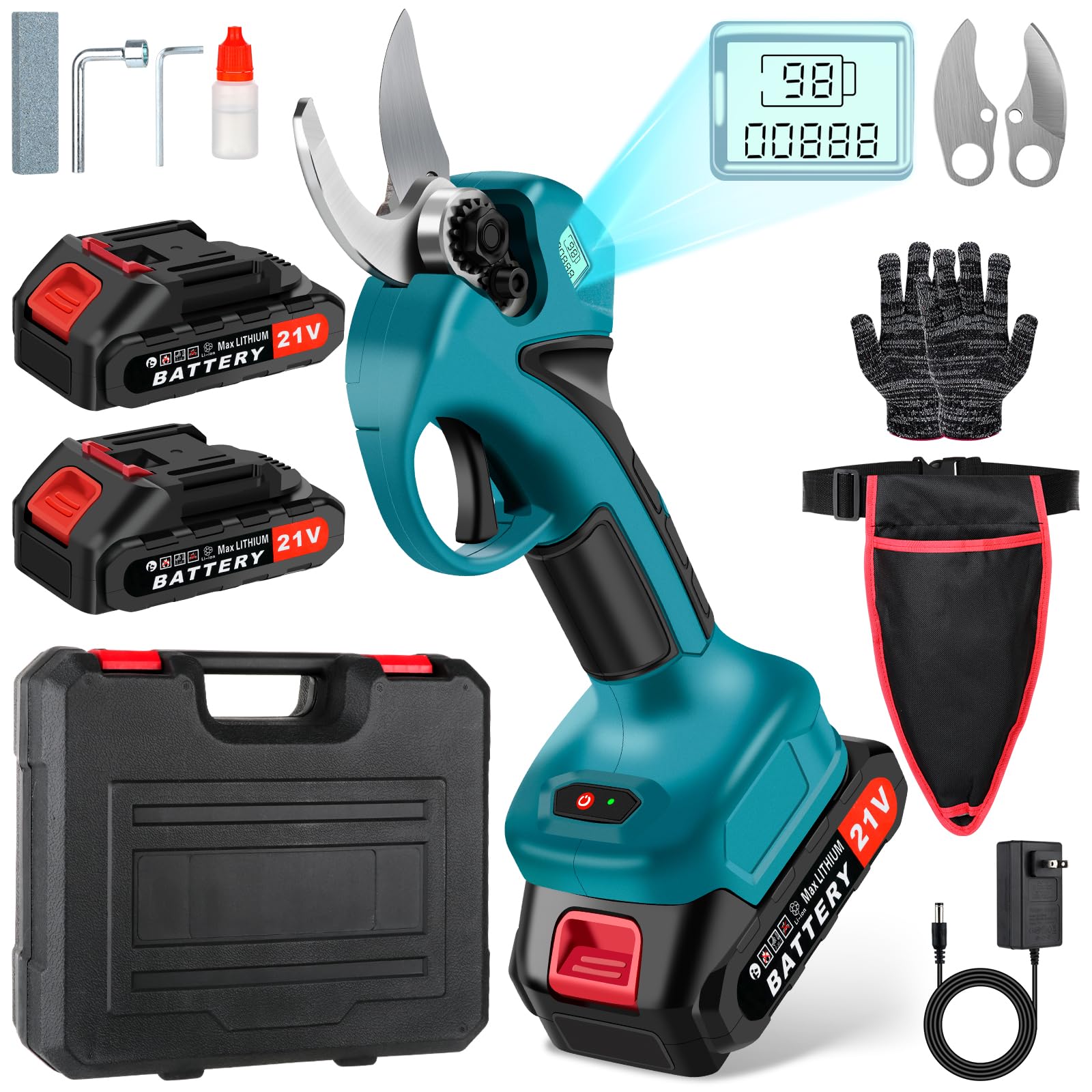 Tijeras de podar eléctricas de 21 V, podadoras eléctricas de 1.575 in de diámetro de corte para jardinería resistentes con juego d