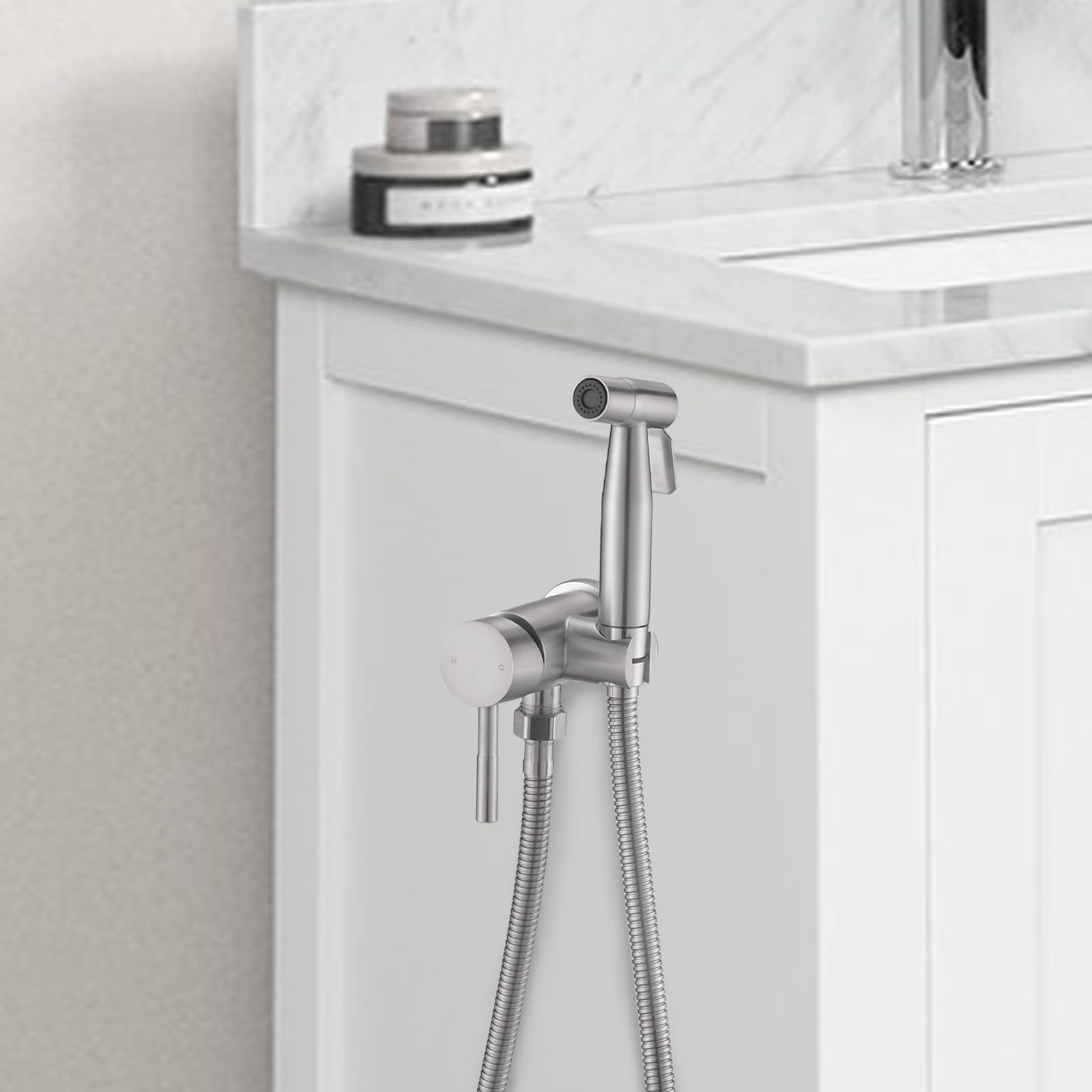 Chomely – Pulverizador de bidé de mano de agua caliente para inodoro, montado en tocador de baño, accesorio de rociador de tela pa