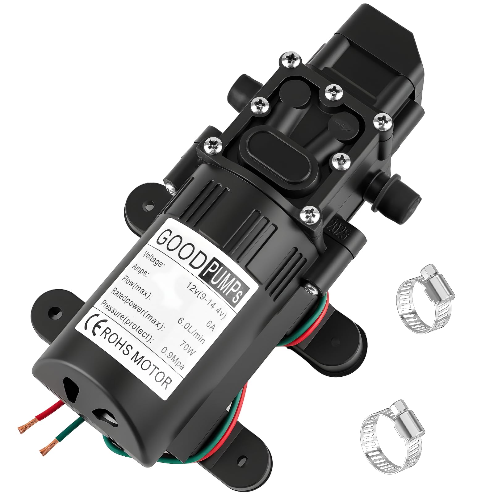 Bomba de diafragma de presión de agua de 12 V CC, bomba pulverizadora autocebante de 6 L/min 0.9 MPA 80 PSI, bomba de transferenci