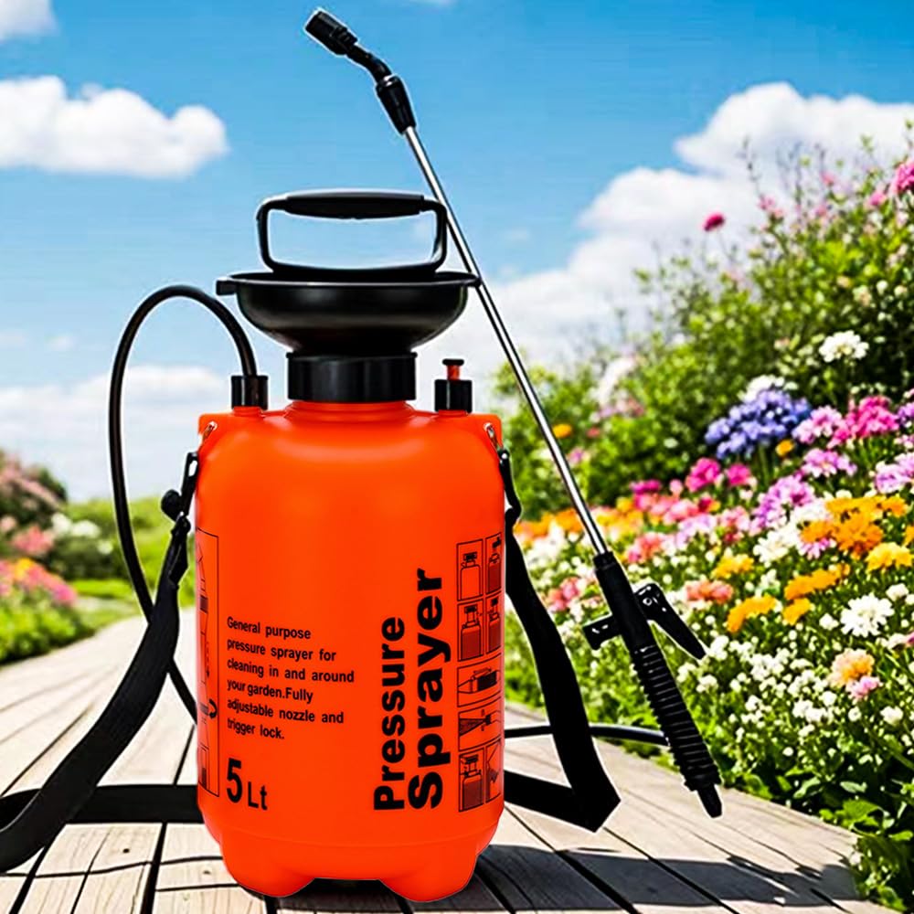 Pulverizador de bomba de jardín de 1.3 galones, botella de agua a presión para césped y jardín con correa para el hombro para plan