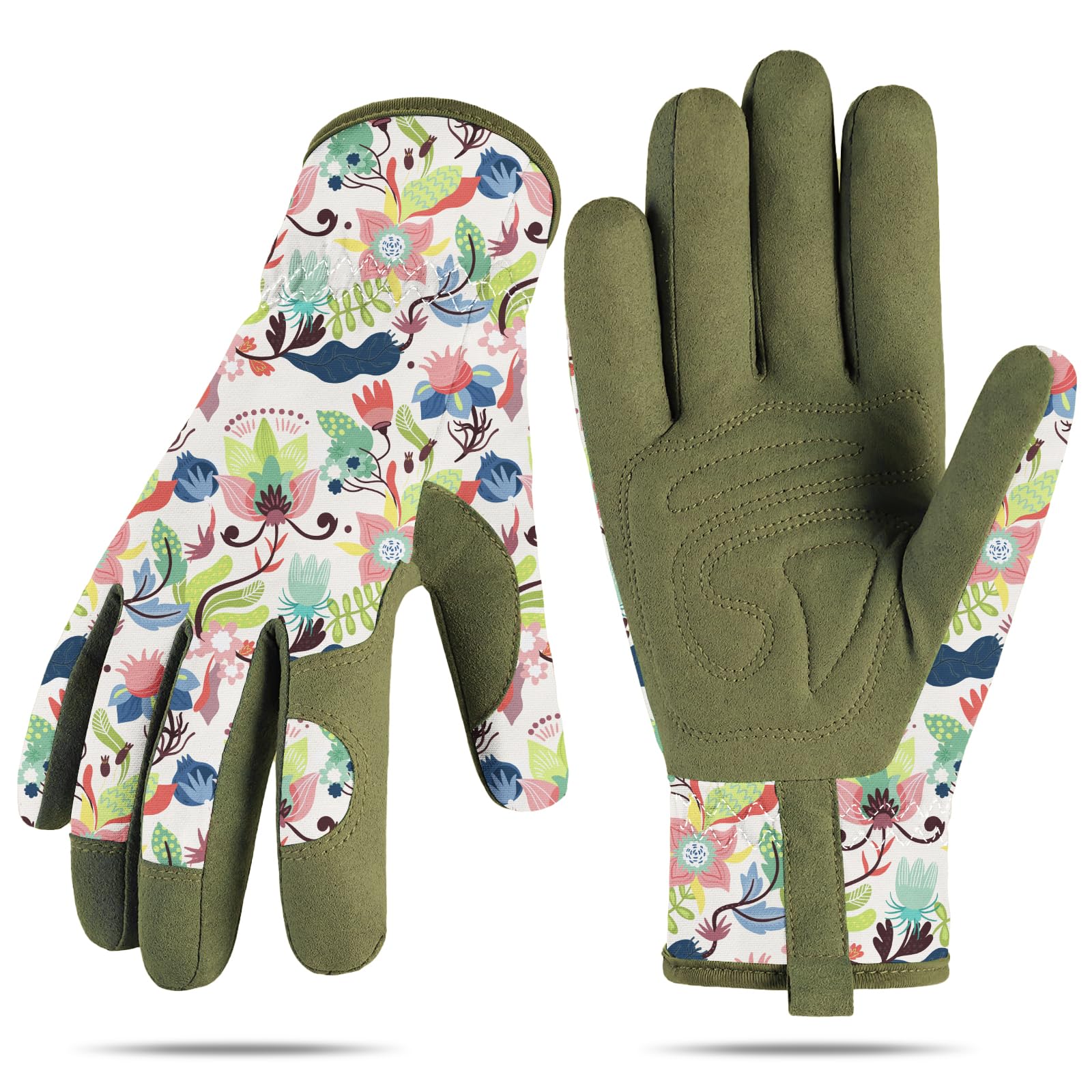 Digz Planter Pro – Guantes de jardinería y trabajo para mujer con puntas de dedos compatibles con pantalla táctil, patrón geométri