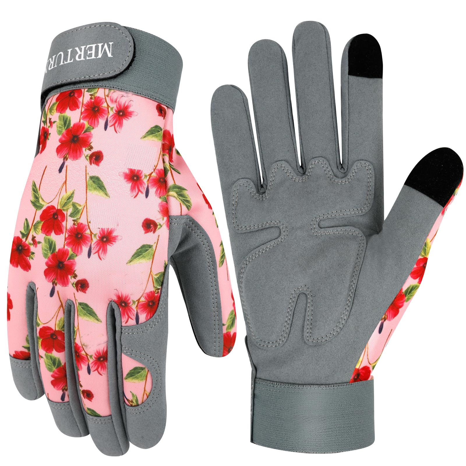 Guantes de jardinería a prueba de espinas para mujer, guantes de trabajo de cuero para pantalla táctil, regalo para mujer (M-marga