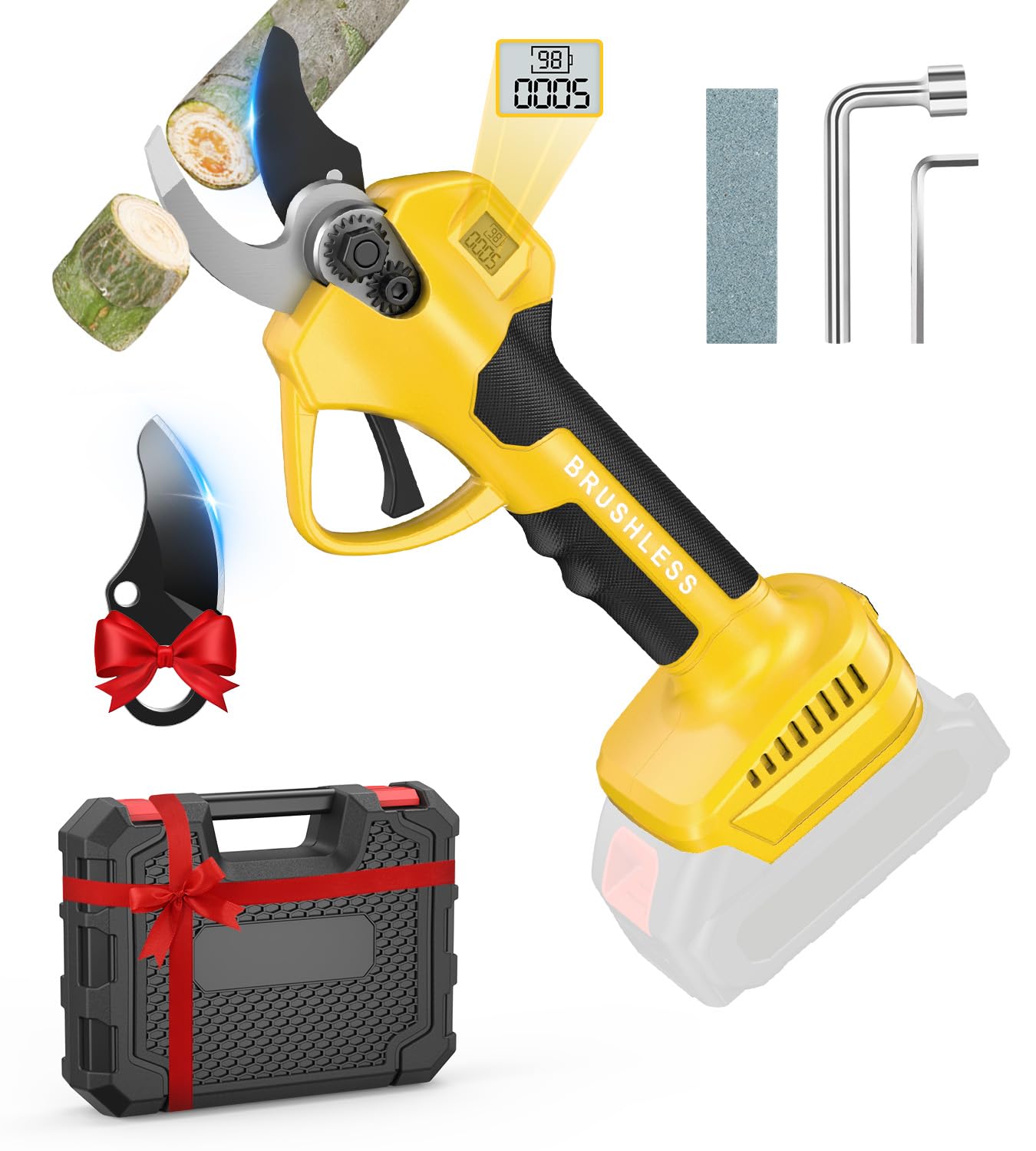 Tijeras de podar eléctricas, tijeras de podar inalámbricas de 800 W sin escobillas, podadora eléctrica de 1.4 pulgadas de diámetro