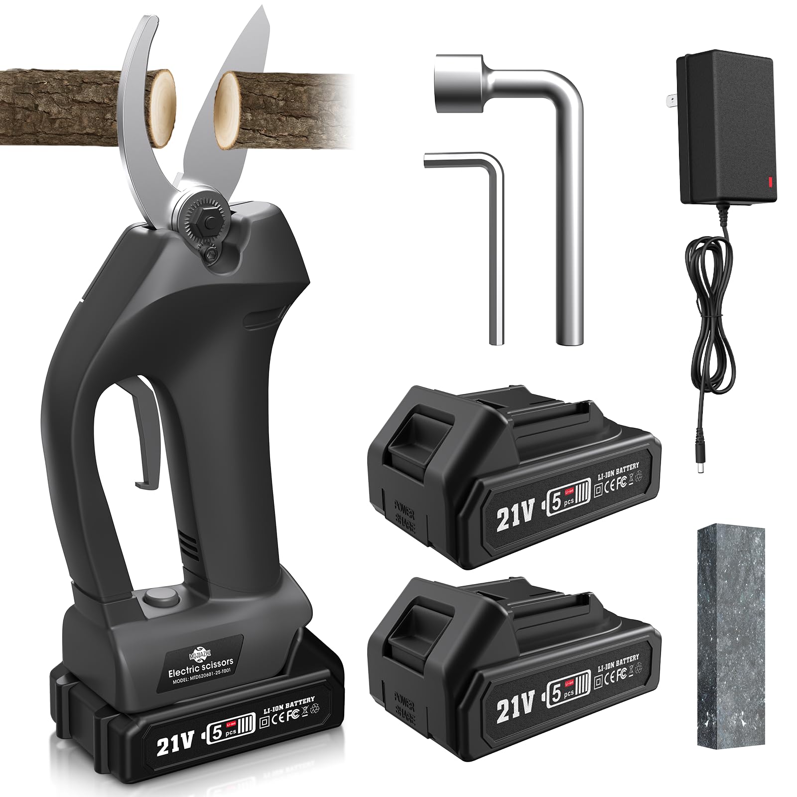 Tijeras de podar eléctricas, podadora inalámbrica con 2 piezas recargables de litio de 21 V, 2 Ah, 2000 mA y 2 cuchillas, diámetro