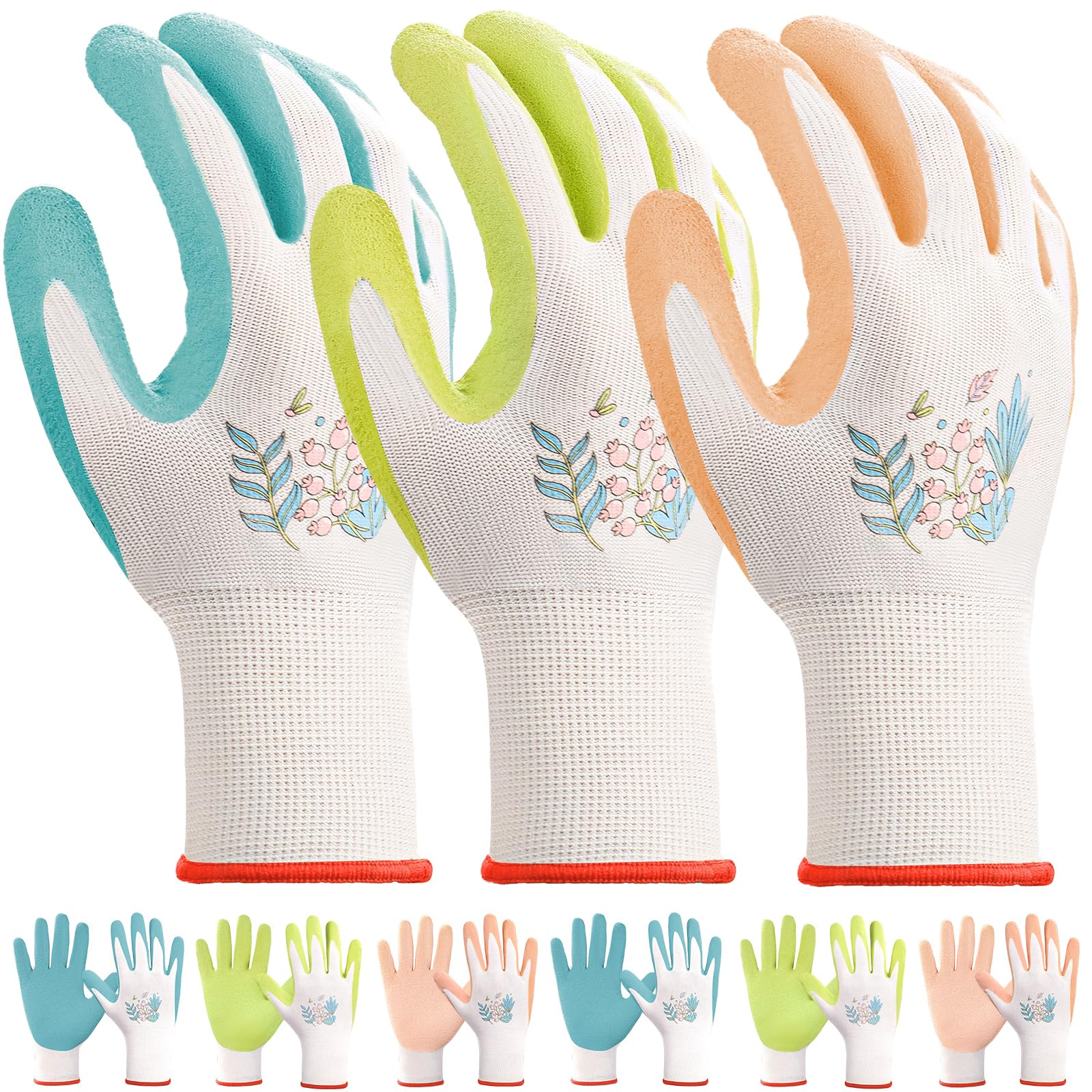 PACIFIC PPE 3 pares de guantes de jardinería para mujeres y mujeres, guantes de jardín con revestimiento de goma, guantes de traba